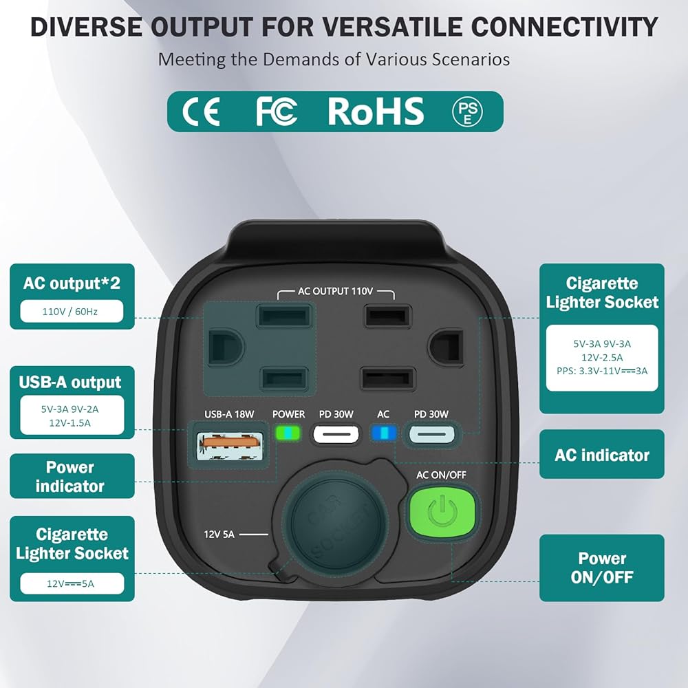 حل الطاقة أثناء التنقل: سواء كنت في رحلة على الطريق، أو مغامرة تخييم، أو ببساطة تحتاج إلى تشغيل الأجهزة في سيارتك، فإن محول الطاقة هذا هو الحل الأمثل. استمتع بالطاقة الموثوقة أينما ذهبت، مما يضمن بقاء أجهزتك مشحونة وجاهزة للاستخدام.