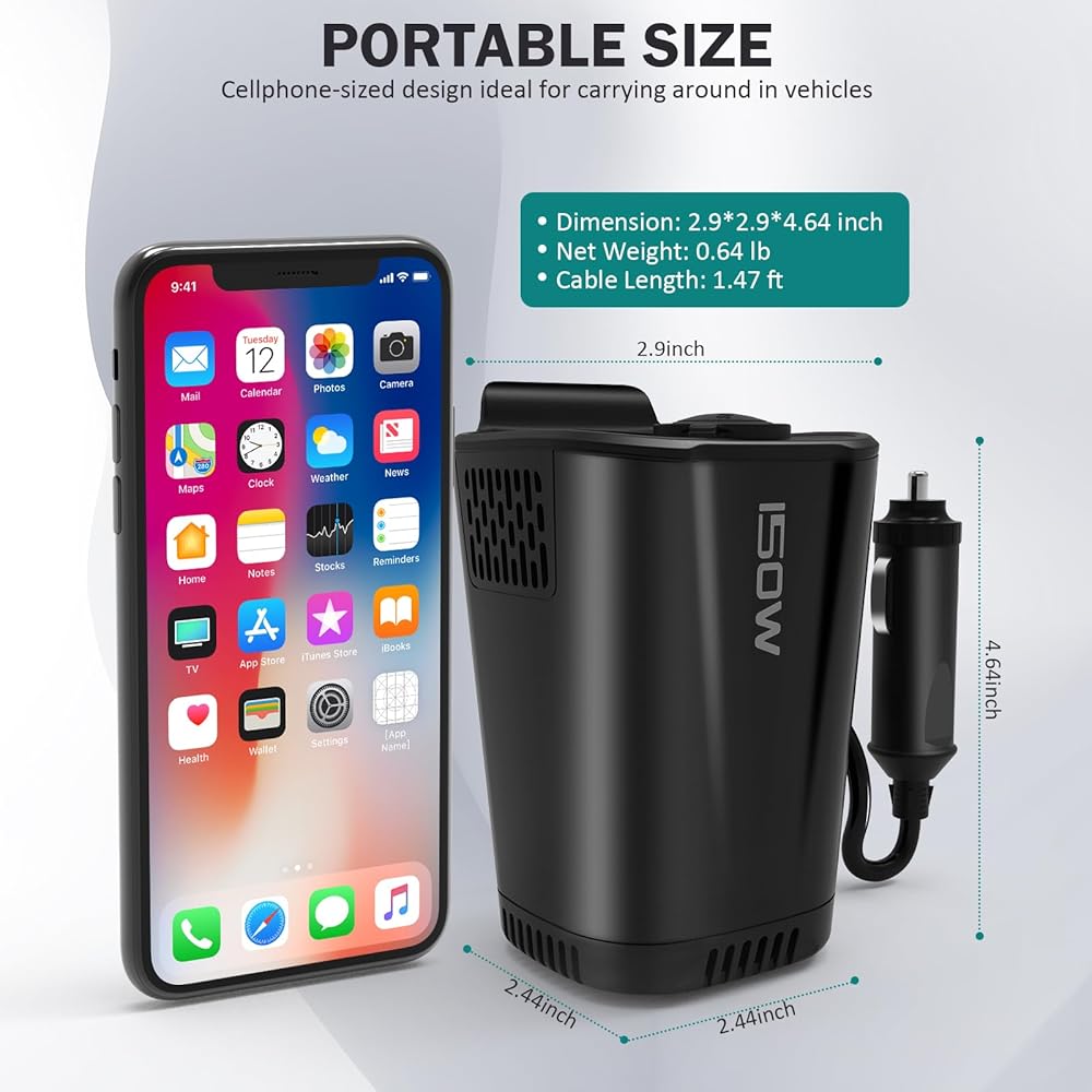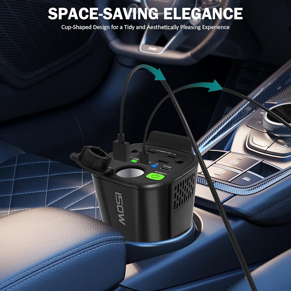 تصميم مريح: بفضل حجمه الصغير وتصميمه المريح لمنفذ توصيل السيارة، يعد عاكس الطاقة هذا مثاليًا للاستخدام في سيارتك. تضمن إضافة محول شاحن السيارة بمقبس ولاعة السجائر التوافق مع مجموعة واسعة من الأجهزة.