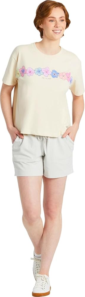 Life is Good - تي شيرت نسائي بأكمام قصيرة من Fineline Hibiscus Row، اللون أبيض المعجون، المقاس: X-Large