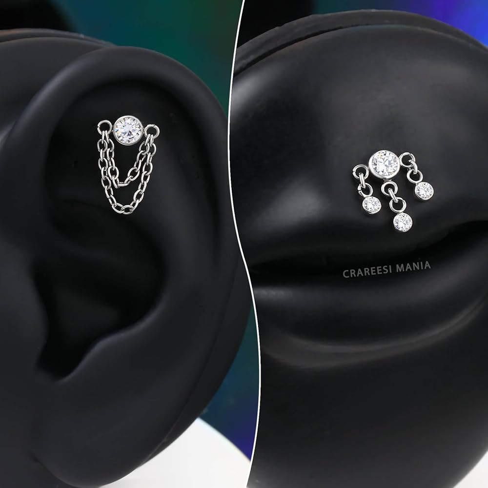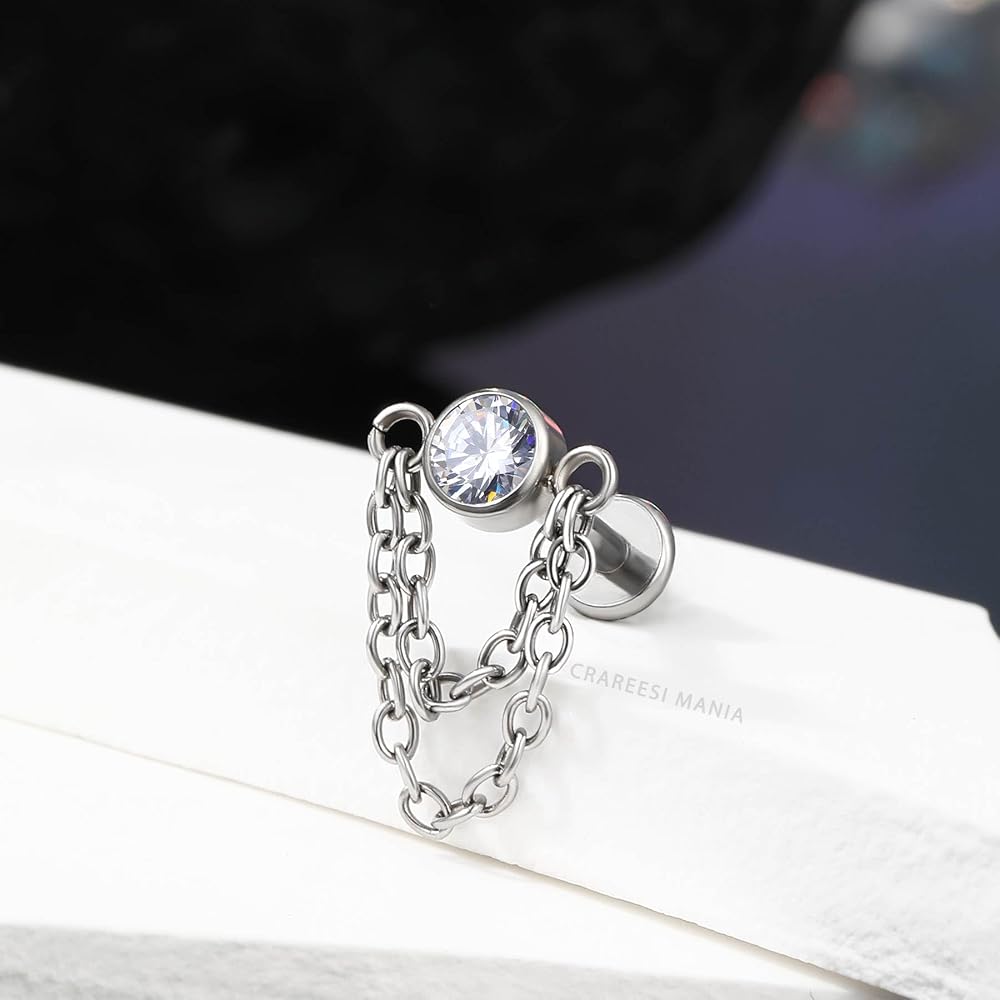 [تصميم آسر]: ارفع من أسلوبك مع أزرار لابريت الشفافة المتدلية. هذا التصميم يعزز جاذبية ثقبك.