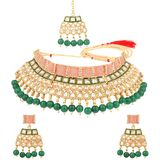 Efulgenz مجموعات المجوهرات الهندية للنساء مجوهرات بوليوود التقليدية كريستال اللؤلؤ الزفاف الزفاف المختنق قلادة أقراط Maang Tikka مجموعة مجوهرات