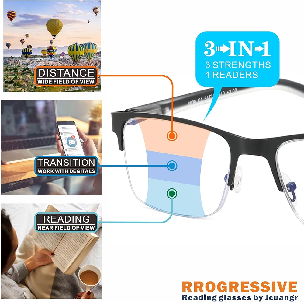 نظارات قراءة ثنائية البؤرة للرجال: قم بترقية تجربة القراءة الخاصة بك مع قارئات Noline Bi Focus التقدمية متعددة التركيز. تسمح لك عدسات التكبير الذكية الواضحة بالرؤية بوضوح على مسافات مختلفة دون تشغيلها وإيقافها. يوفر الجزء العلوي الشفاف للعدسة رؤية واضحة للمسافة، والجزء السفلي مصمم لقراءة طول النظر الشيخوخي. انتقال غير مرئي بينهما 2، قارئات متعددة البؤر لعمل الكمبيوتر وتأتي مع فترة تكيف من 1-3 أسابيع لتعزيز الراحة وسهولة الاستخدام.