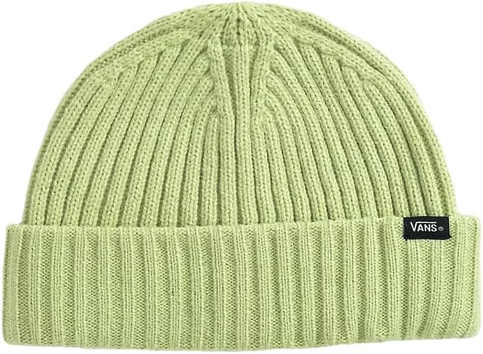 Winter Pear Shallow Green Beanie from Vans. Fold-over cuff with Vans tag. Thick ribbed knit construction. One size fits most. Shallow fit. 100% acrylic.
