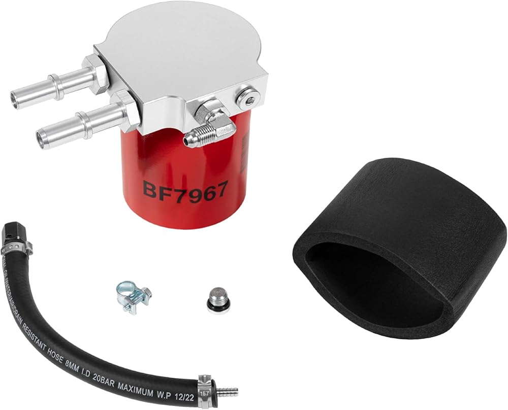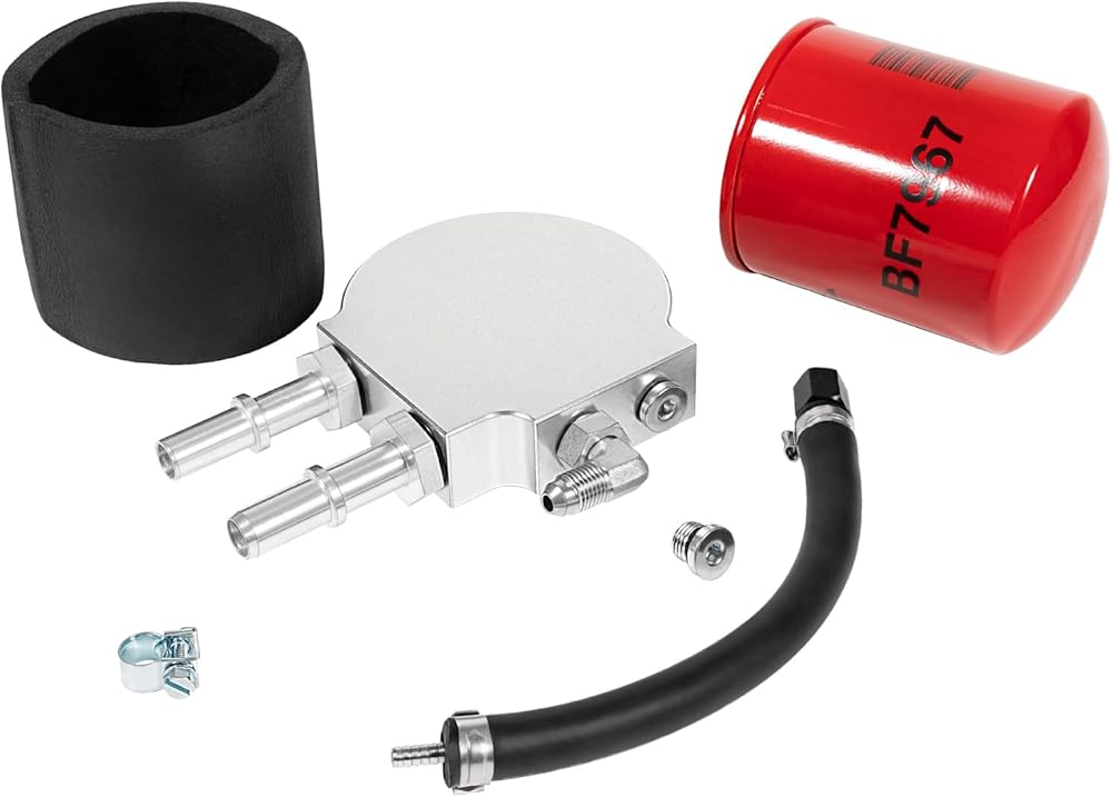 The 121003 Fuel Filter Conversion Kit allows you to use a more affordable, higher-flow fuel filter for Powerstroke 6.7L models (2011-2024). This kit replaces the factory plastic fuel filter, improving performance and saving costs. The fuel filter housing also doubles as a fuel distribution block for trucks running multiple high-pressure injection pumps.