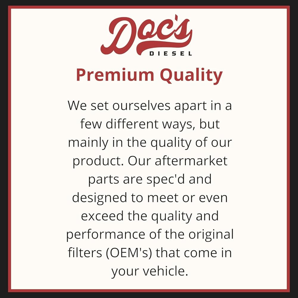 DIESEL FUEL FILTER – Doc's Diesel Filters are spec'd and designed to meet or exceed the quality/performance of the original filters (OEM's) that come in your vehicle. Doc's premium grade media filter paper used on all Doc's Filters is what sets Doc's above the rest.