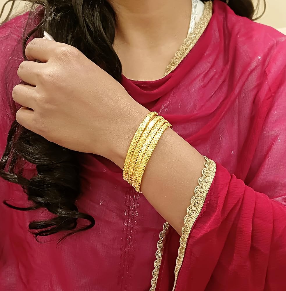 Efulgenz Gold Tone Bangle Indian Bangle to Women Dubai Style Bangle مجموعة أساور الذهب الهندية Bracelet المجوهرات الهندية للعرائس للزفاف المجوهرات (4 أجهزة كمبيوتر)