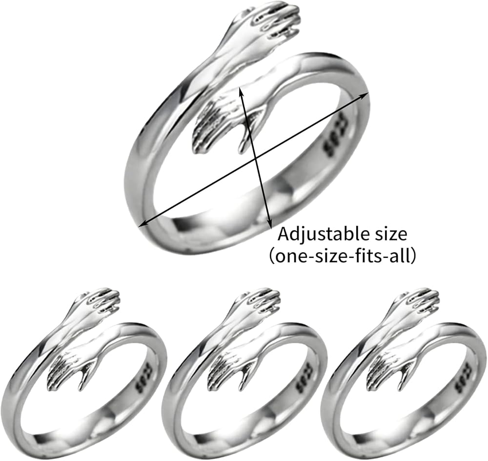 • - Elegant and unique design: These open rings feature two hands hugging each other, creating a symbolic and meaningful piece of jewelry that will catch everyone's attention