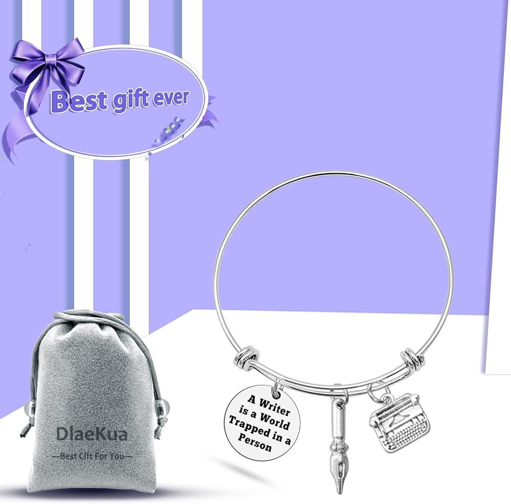 dlaekua الكاتب الهدايا للنساء الكاتب سوار للنساء الروائي هديه الفولاذ المقاوم للصدا سوار الكتابة هديه توسيع الإسورة هديه الأدبية عيد الميلاد هديه عيد ميلاد هديه التخرج للمؤلف