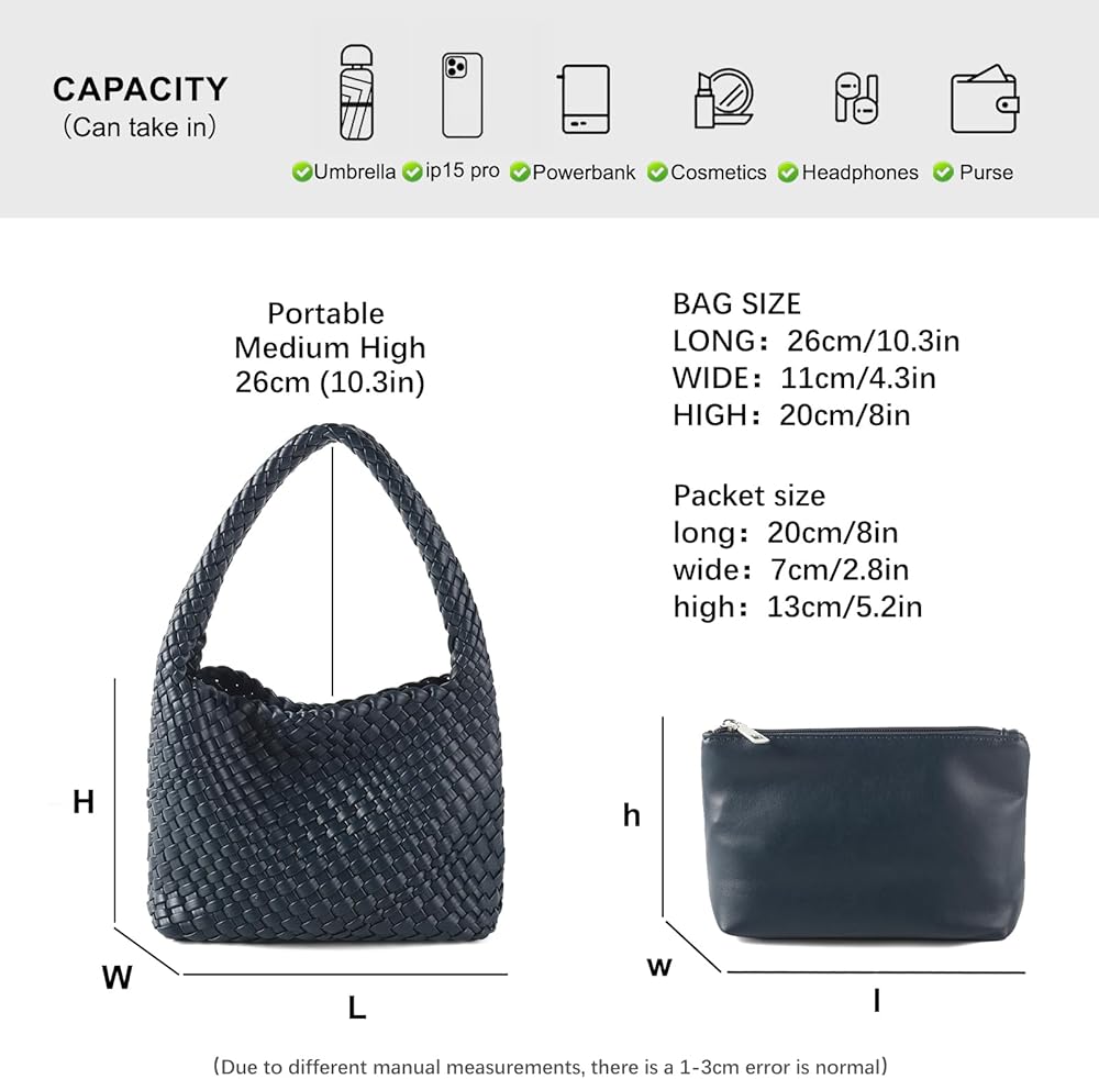 👉【حقائب منسوجة بحجم مثالي للنساء】: حجم حقيبة اليد 9.7 طول × 3.9 عرض × 7 ارتفاع بوصة، ارتفاع الحمل 9.4 بوصة. حجم المحفظة الجلدية: 7.8 طول × 2.4 عرض × 5.2 ارتفاع بوصة، يمكنها حمل الصحف والمفاتيح ومستحضرات التجميل وما إلى ذلك، يمكن لحقيبة اليد حمل العملات المعدنية والنقود والهواتف المحمولة وما إلى ذلك، رؤية الجيب واسعة ووصول سريع، لذلك يمكنك بسهولة العثور على الأشياء بالداخل. تصميم خفيف الوزن وواسع الحجم بالحجم المناسب، يكفي لحمل جميع احتياجاتك اليومية.