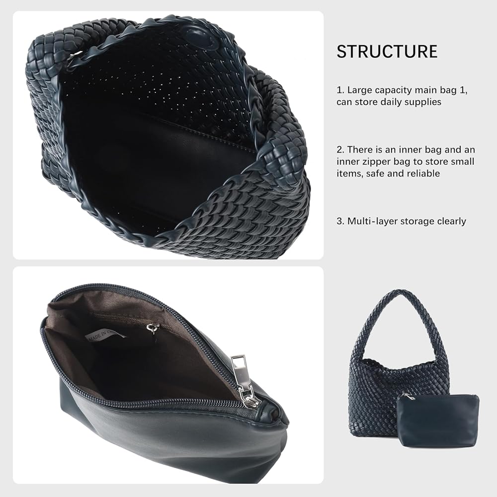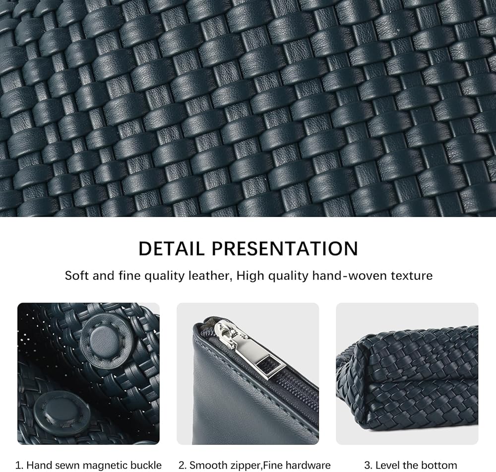✨【تصميم بسيط ومريح 】: محفظة حقائب اليد الجلدية المنسوجة يدويًا، حقيبة اليد المنسوجة تستخدم إبزيم مغناطيسي قوي بسيط لسهولة التخزين، تتميز حقيبة اليد بسحاب معدني قوي الجودة يضمن عدم فقدان أغراضك الصغيرة، مريحة للحمل وفتحة الذراع كبيرة بما يكفي لارتدائها كحقيبة كتف. نمط حقيبة يد كلاسيكي مشهور، مقبض فريد لحقيبة اليد، بسيط وغير رسمي، موضة أنيقة، يمكن مطابقته مع ملابس مختلفة، يزيد من الشعور العام بالشكل.