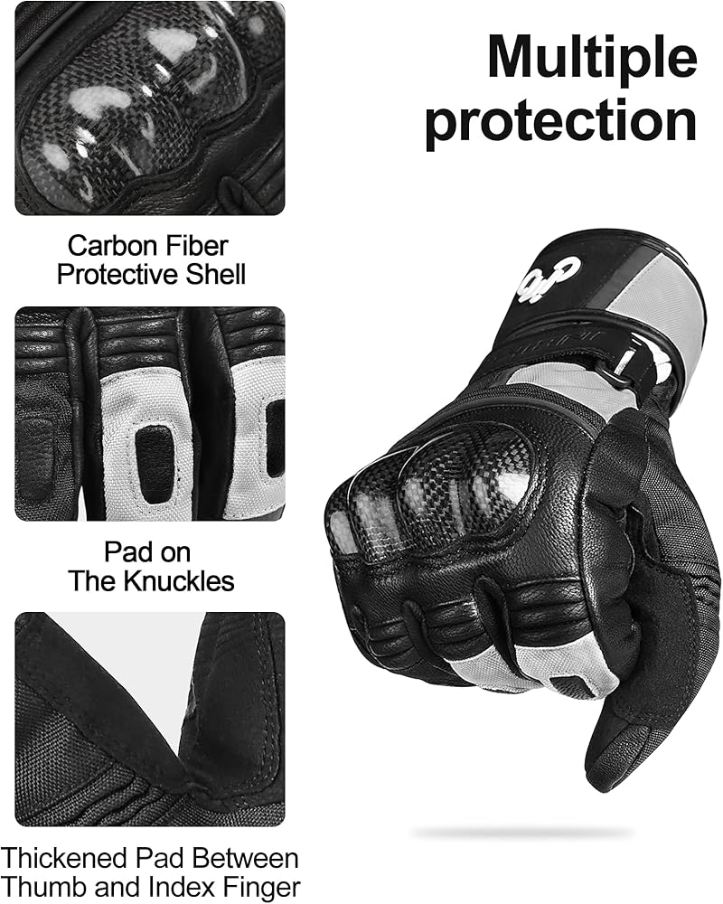 • 【أقمشة عالية الجودة】- قفازات جلدية للدراجات النارية، وظهر راحة اليد وراحة اليد 250 جم/م2 و40 جم/م2 ثينسوليت للتدفئة في الشتاء.