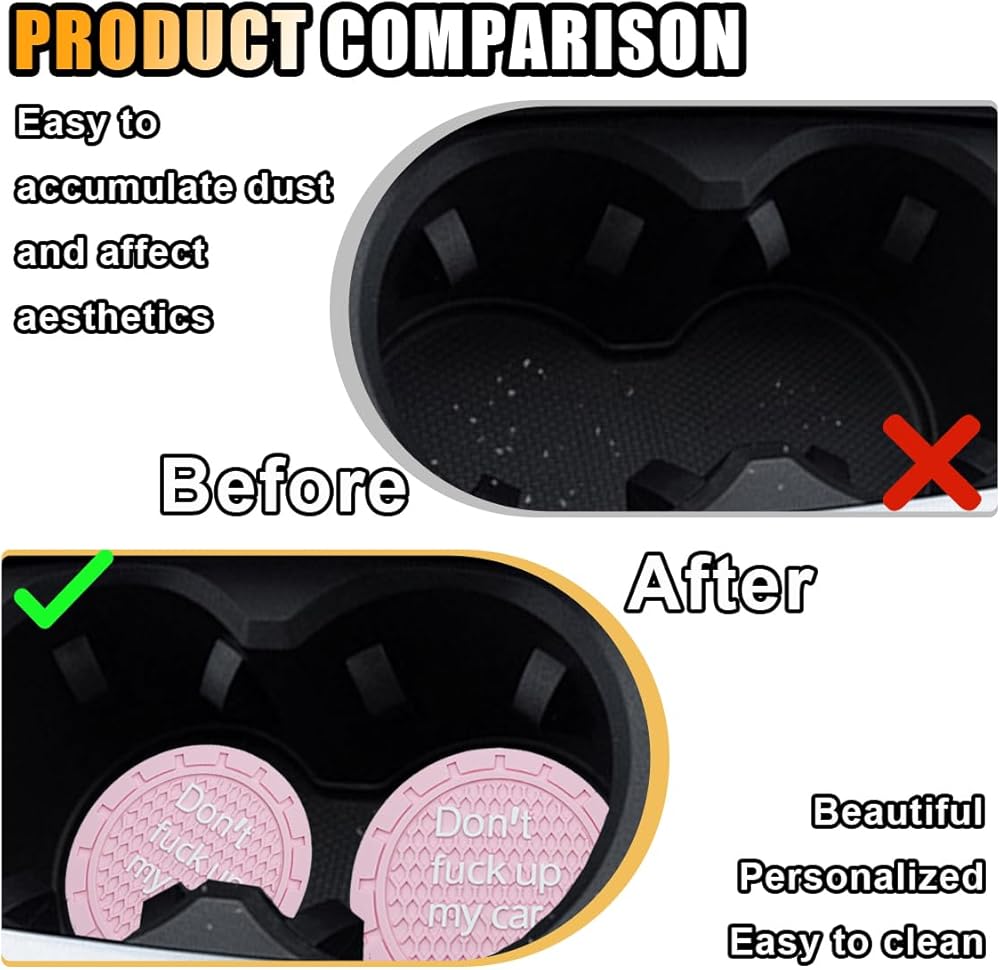 【Superior Quality Material】: The car cup coasters are crafted from high-quality PVC, offering durability and water resistance, dust-proof, and remarkably resilient against scratches and wear. Keep your cup holders clean and tidy.