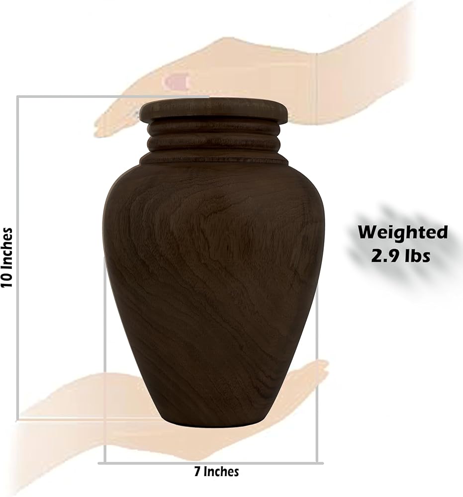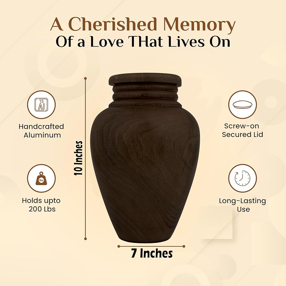 الحجم: يبلغ طول كل جرة حوالي 7 بوصات وعرضها 7 بوصات وارتفاعها 10 بوصات، مما يوفر مساحة واسعة لحمل رماد أحبائك بشكل آمن. قد تختلف الأبعاد قليلاً بسبب طبيعة المنتج المصنوعة يدويًا.