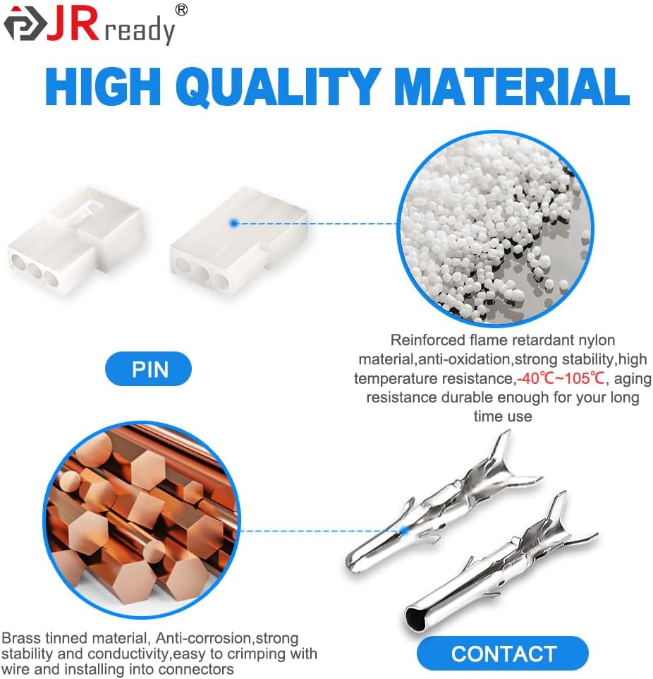 【تصميم موصل الإسكان JRready】 يستخدم الغلاف تصميمًا سهل التركيب، ولا يرتخي الإبزيم أو يسقط، وسهل الفك والتركيب ويدعم التجميع المجاني للموصلات وأطراف مقبس الدبوس. تصميم مختلف الشكل لطرفي المقبس يتجنب سوء المطابقة أثناء عملية التجميع.