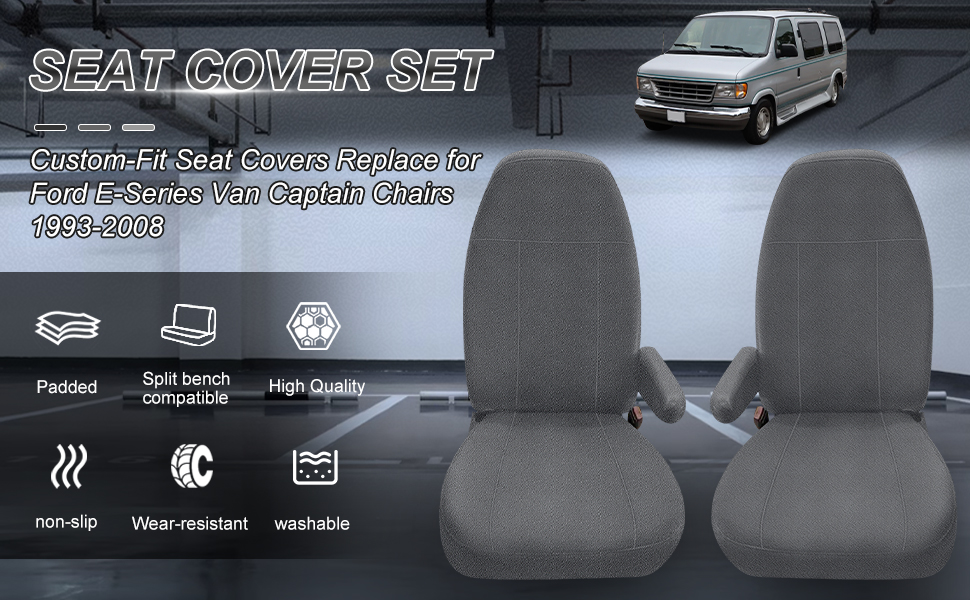 الملاءمة: أغطية المقاعد تحل محل كراسي Ford E-Series Van Captain 1993-2008، فقط لمقاعد المصنع، وليس لشاحنات التحويل ذات مقاعد ما بعد السوق، وليس لمركبات RV