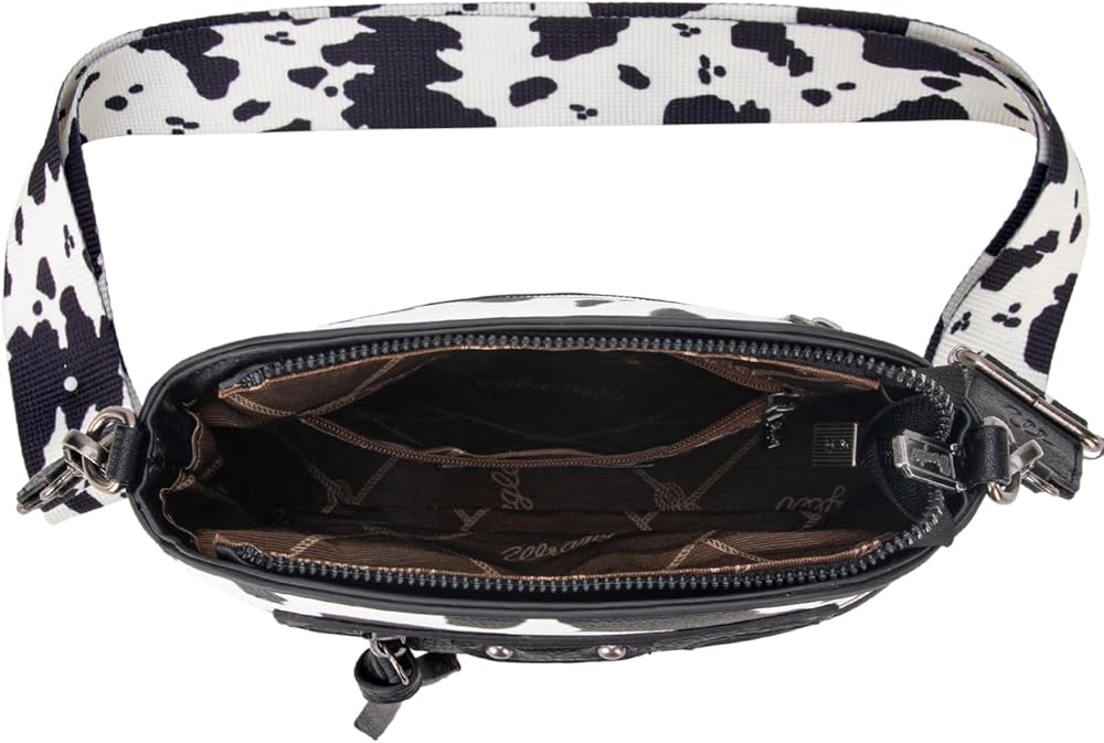 - تضيف حقيبة رانجلر ذات طباعة البقرة لمسة من البرية إلى أي مجموعة.