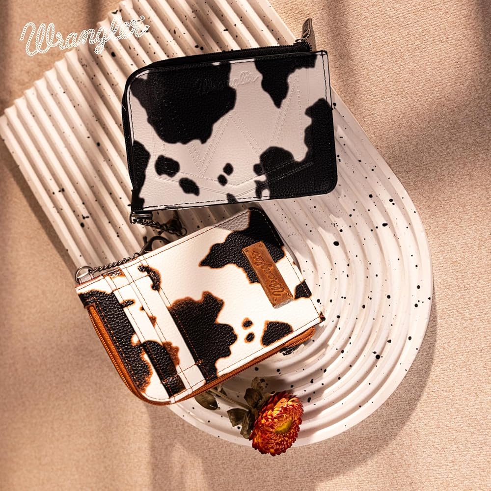 محفظة رانجلر بطبعة بقرة ومحفظة صغيرة بطبعة بقرة غربية