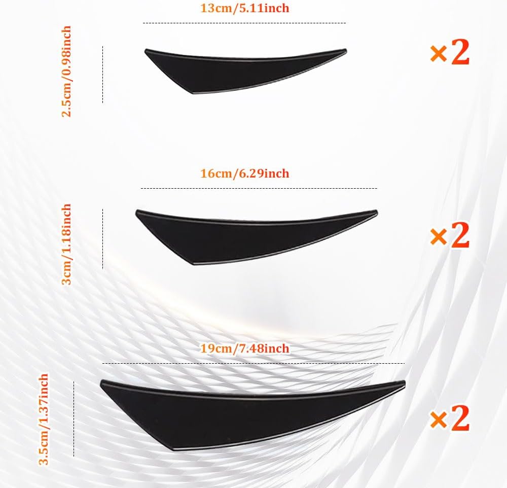[Effective protection]: Car front bumper splitter is designed for car bumpers, whether you often scratch your bumper when turning, parking or passing through a narrow section of road, our products can help you solve all these troubles, install it on both sides of the bumper, and then it can help you withstand the collision, impact, avoid scratches, this reliable accessory can provide perfect protection for your car.
