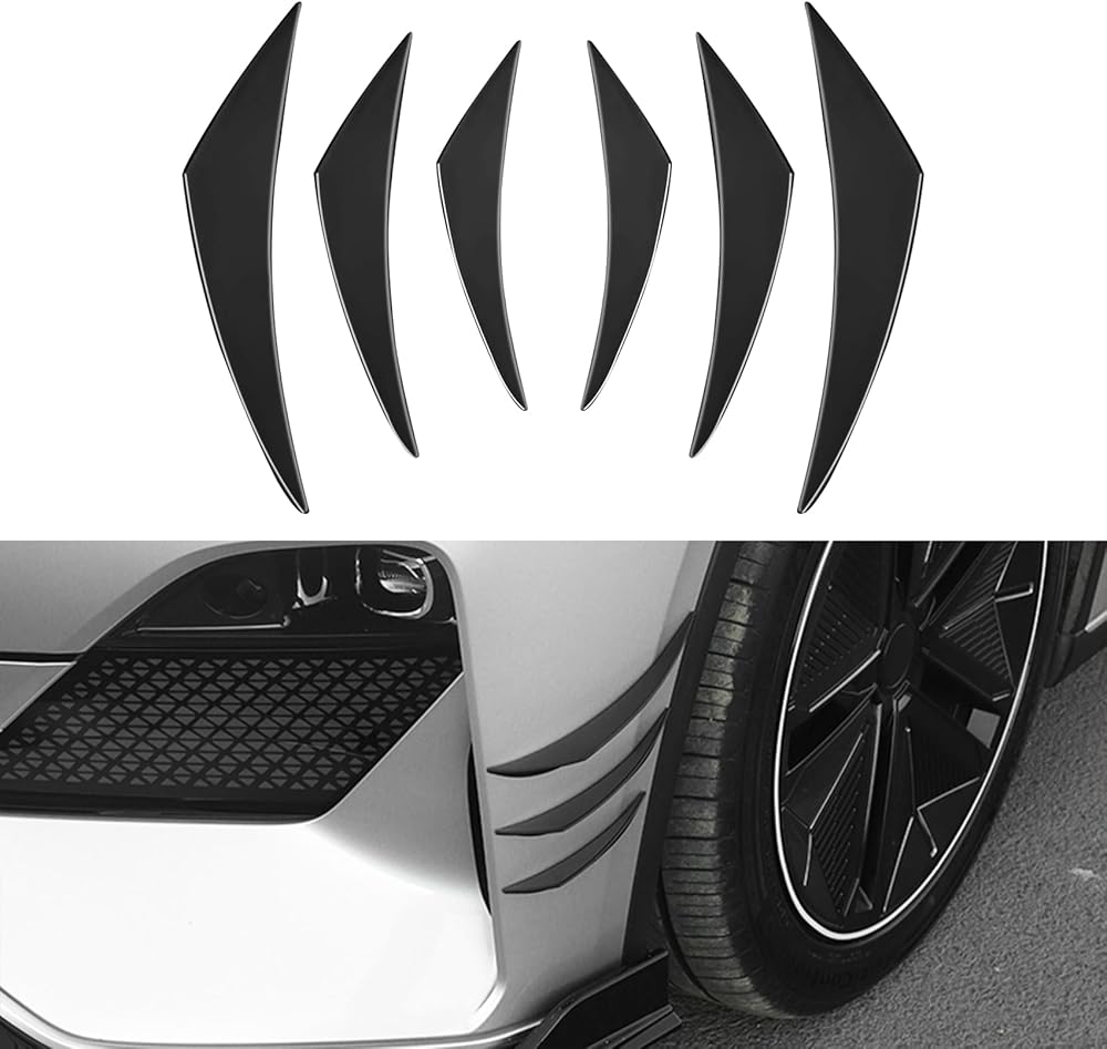 طقم 6 قطع من سبويلر السيارة، مقسم الشفاه الأمامي العالمي للسيارات، ملصقات فتحات جانبية للرفرف، مجموعة سبويلر زعانف ناعمة، شريط تزيين لإكسسوارات السيارة لجسم السيارة (أسود ساطع)