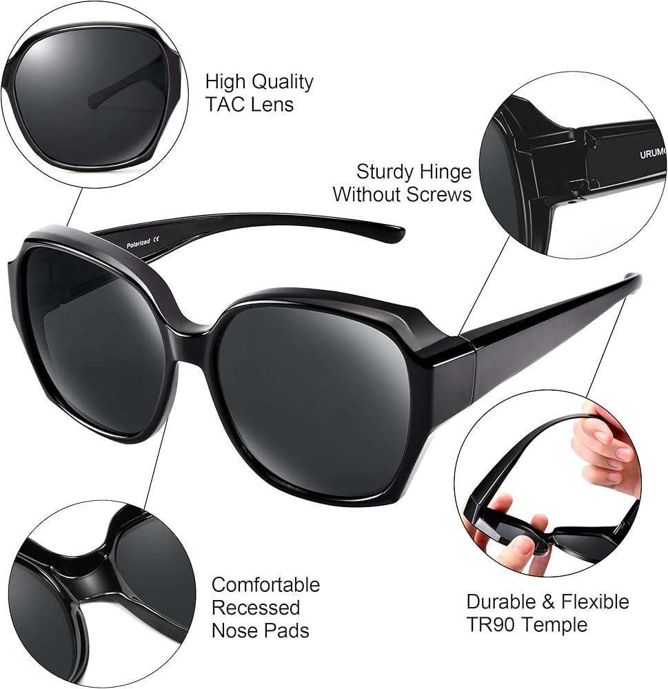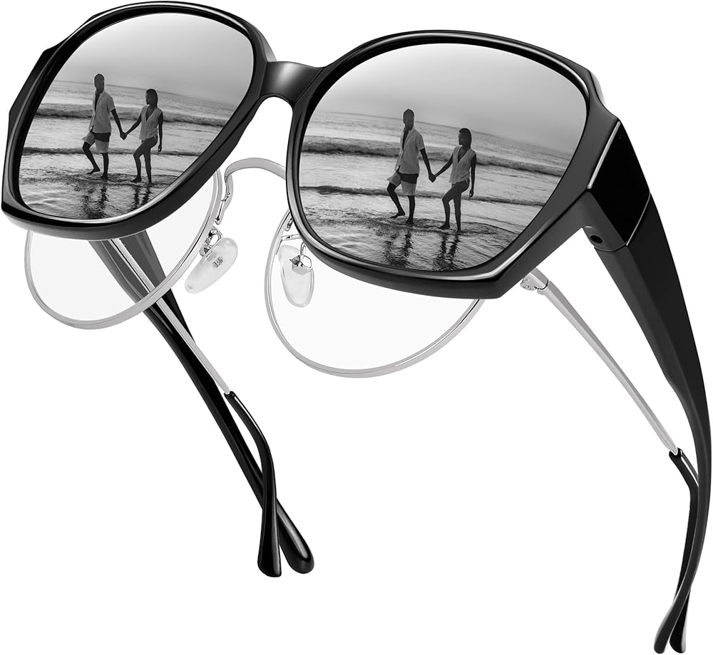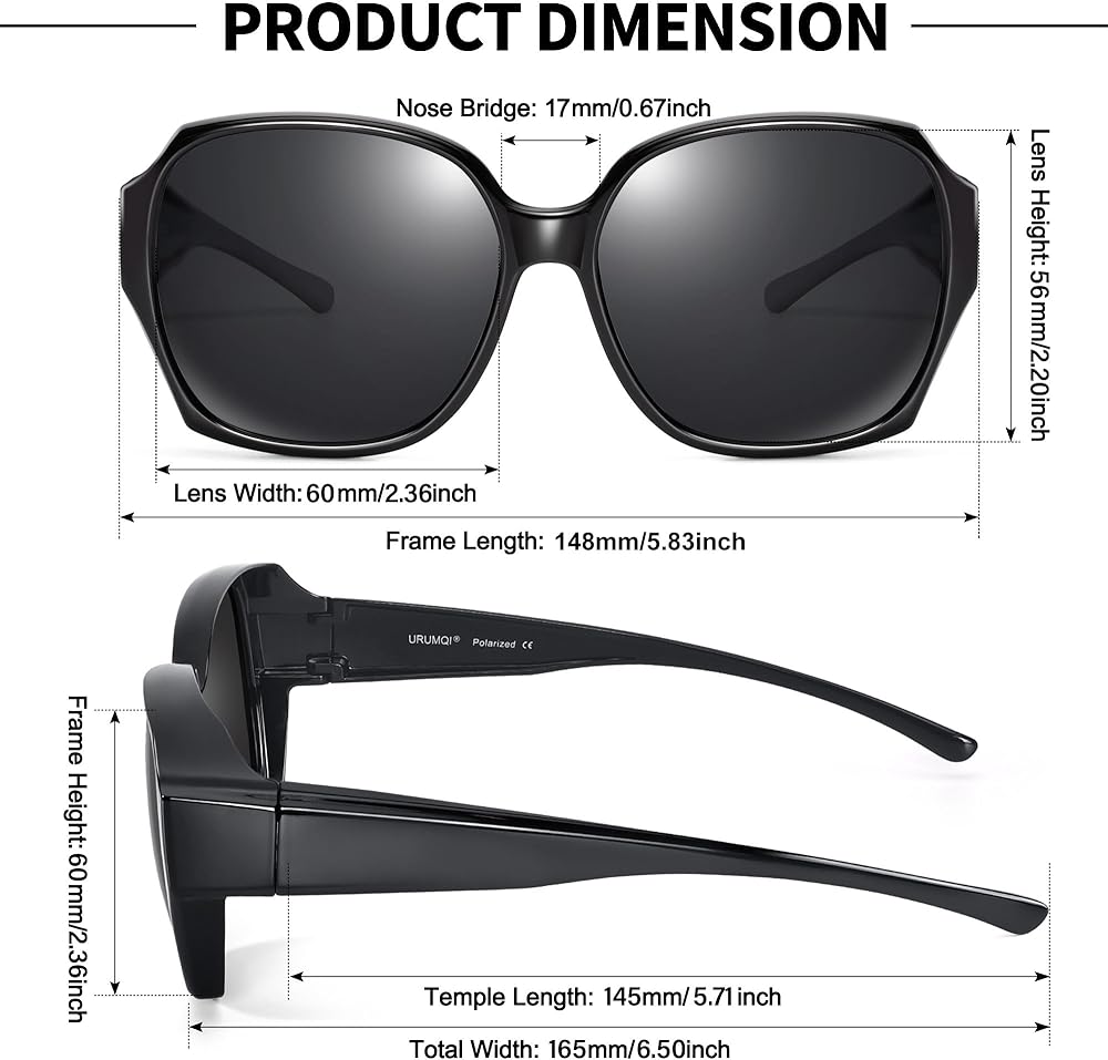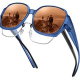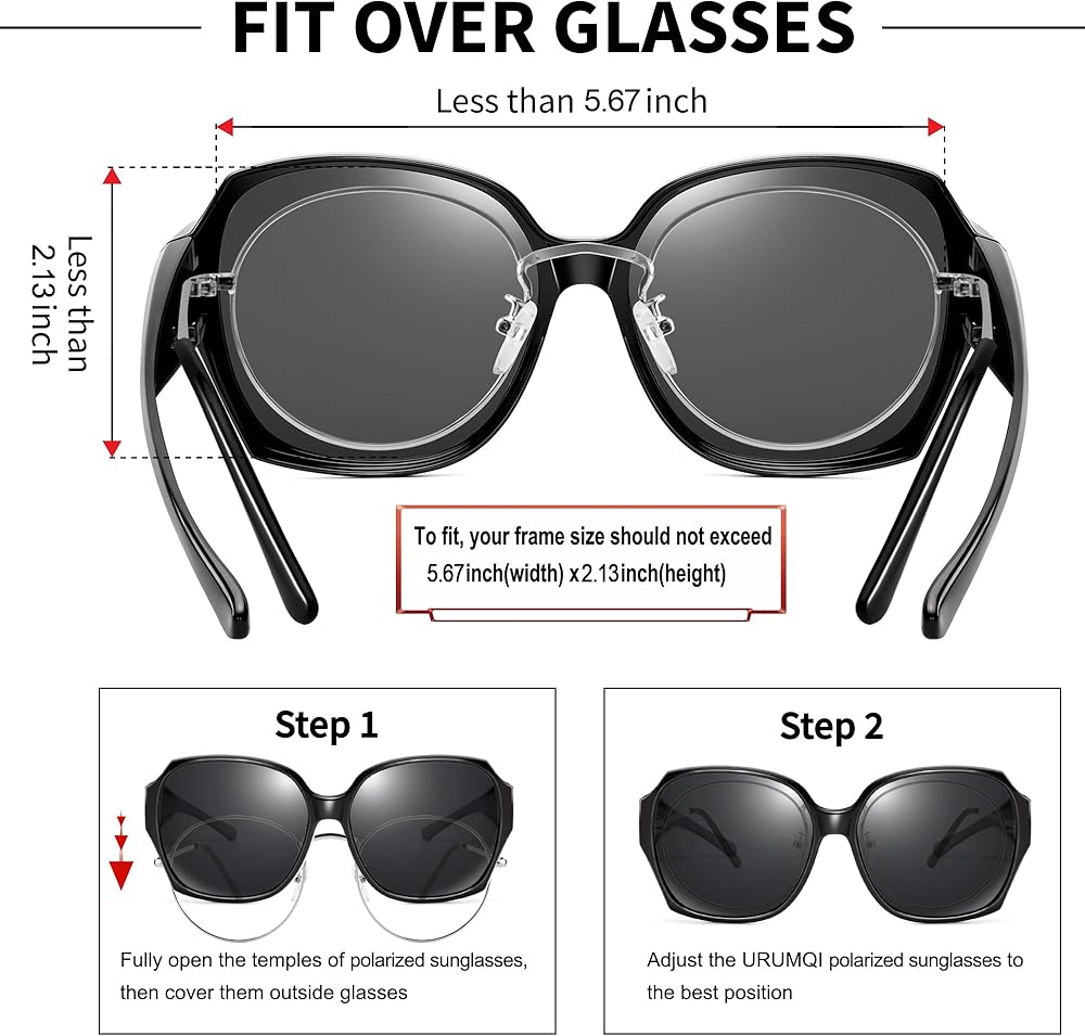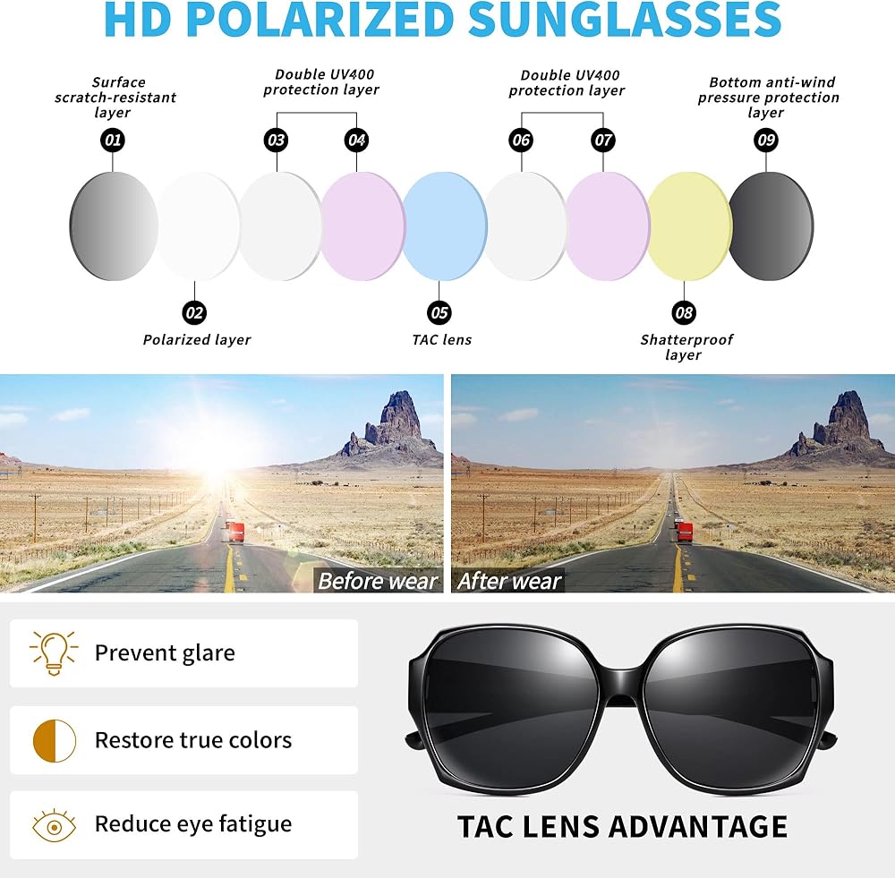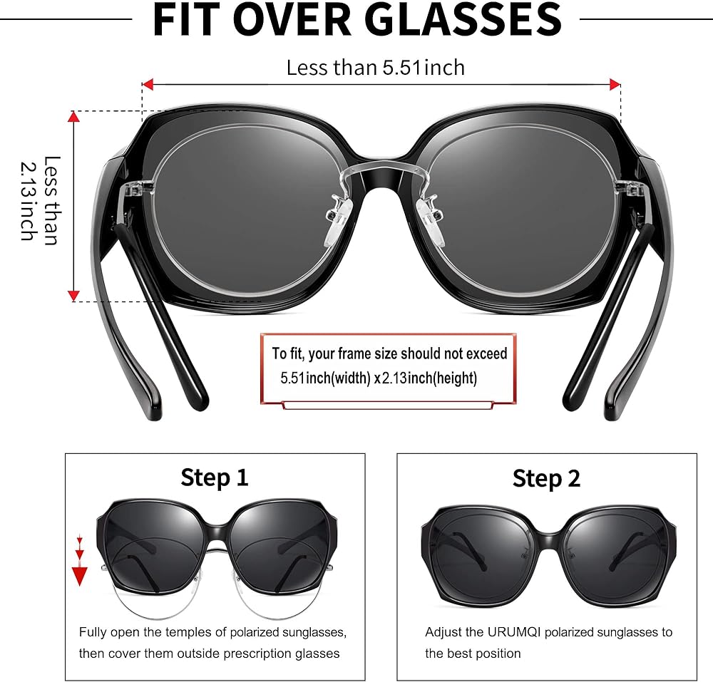 نظارات شمسية تناسب النظارات الطبية: تم تصميم هذه النظارات الشمسية المستقطبة خصيصًا لأولئك الذين يرتدون نظارات طبية، والإطار الكبير والأذرع العريضة يمكنها تغليف نظارات الوصفات الطبية الموجودة لديك بشكل جيد، ويمكن للأشخاص الذين يرتدون العدسات اللاصقة أو ذوي الرؤية العادية أيضًا ارتدائها بمفردهم.