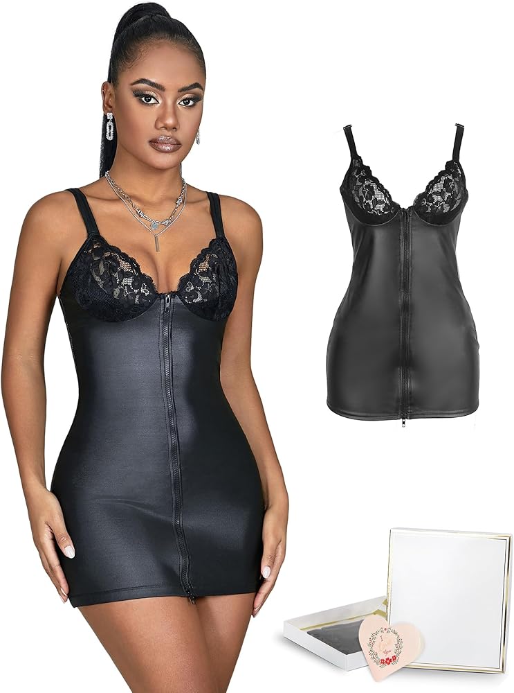 • المزايا: فستان قصير للنساء من الجلد بسحاب، أشرطة سباغيتي قابلة للتعديل، زخرفة من قماش الدانتيل على الصدر، بدون ظهر، سحاب إغلاق، مريح في الارتداء وملاءمة جيدة.