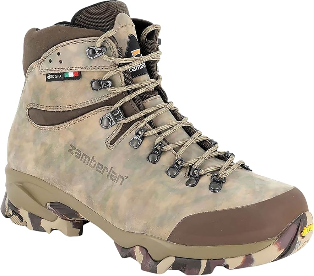 • Camouflaged Zamberlan Vibram 3D outsoles are extremely rugged, provide excellent grip on a variety o