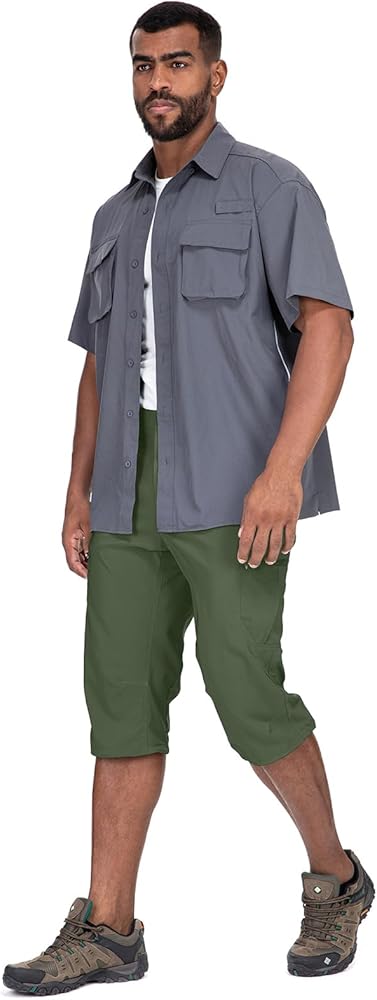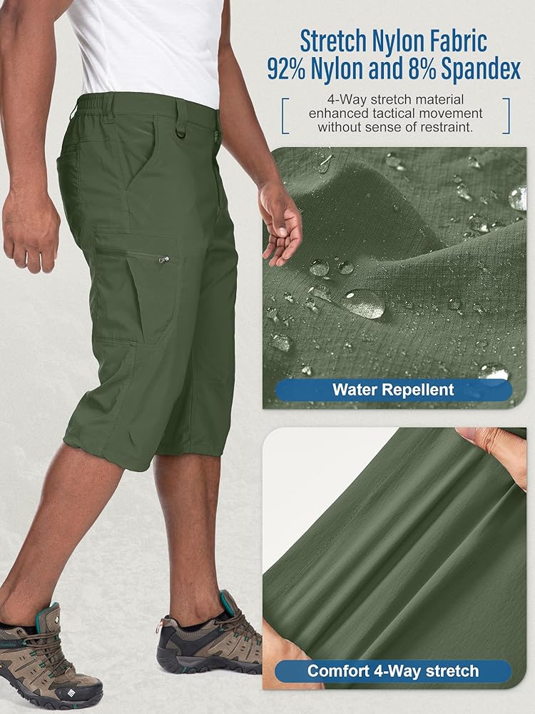 • شورت كارجو كلاسيكي للرجال مصمم لجميع الأنشطة الخارجية والرياضة. شورت كابري طويل 3/4 للرجال مناسب للأنشطة غير الرسمية والخارجية مثل السفر والتخييم والمشي لمسافات طويلة والاستراحة والعطلات والارتداء اليومي وما إلى ذلك.