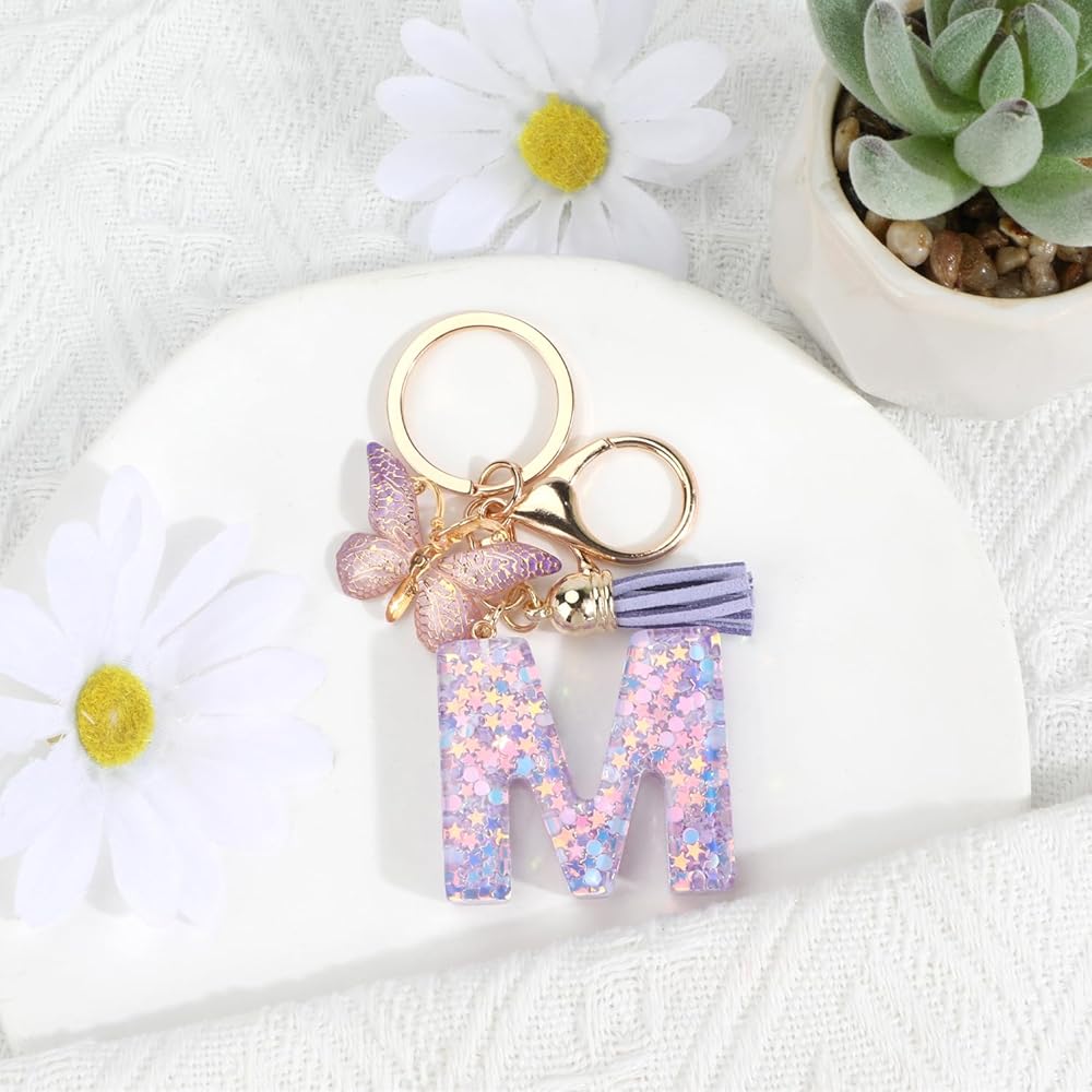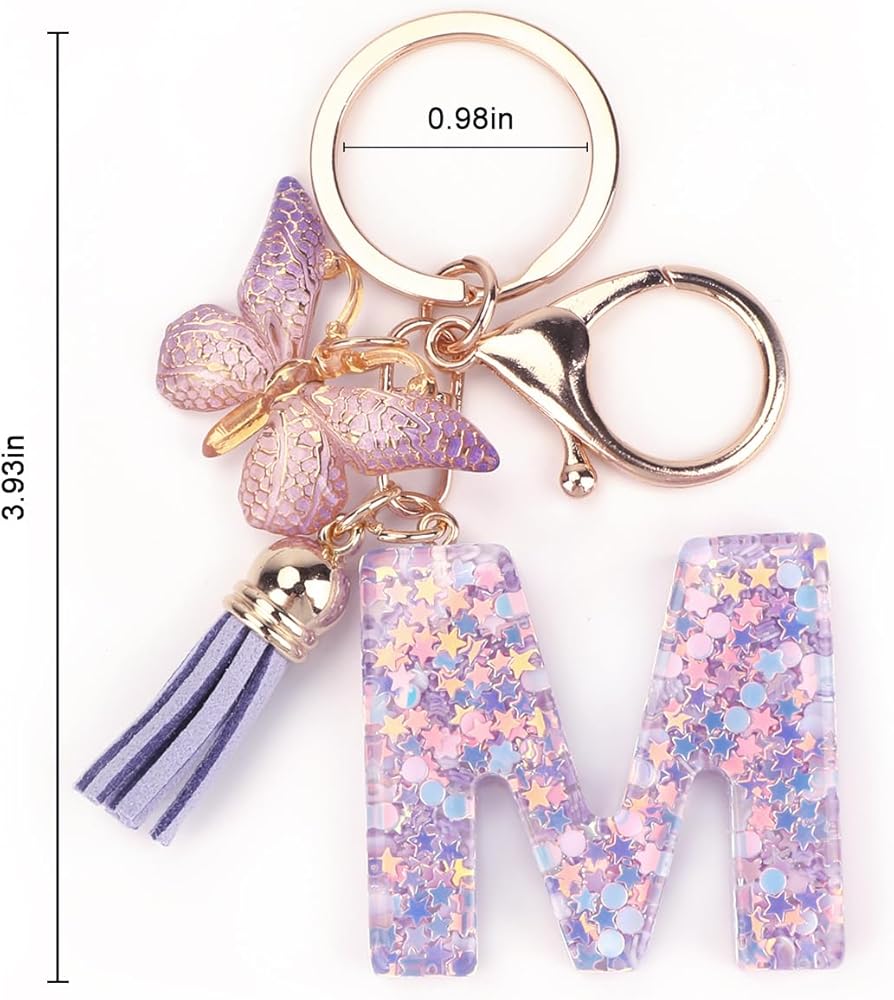 تصميم أنيق ولافت للنظر: تتميز بحرف من الراتنج المذهل مزين ببريق على شكل قلب، سلسلة المفاتيح هذه تتألق مع كل حركة. ألوانه النابضة بالحياة وتفاصيل الفراشة الساحرة تجعله إكسسوارًا استثنائيًا ومميزًا. مثالية كسلسلة مفاتيح أرجوانية أو حلية للحقيبة، فهي تضيف لمسة من الأناقة إلى أي محفظة أو حقيبة ظهر