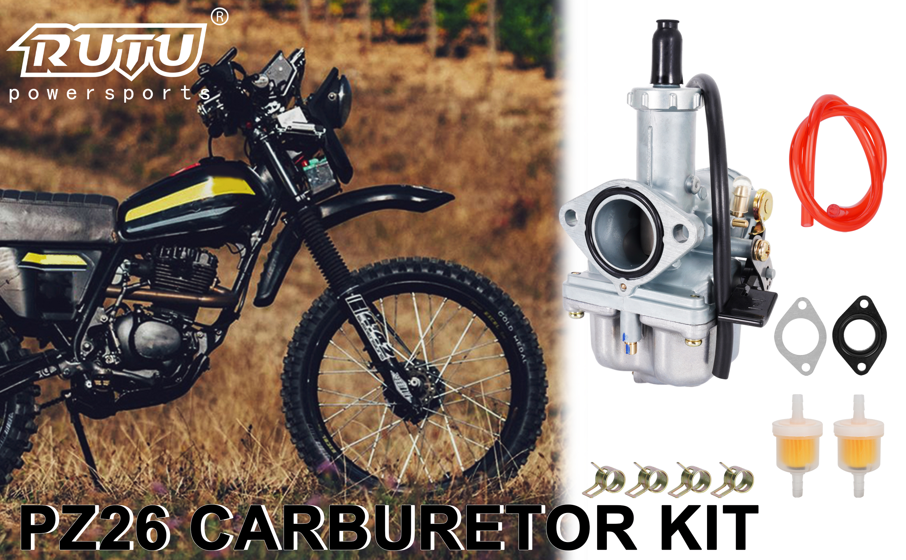 rutu pz26 المكربن 26mm استبدال عدة الكربوهيدرات ل xr100 xr100r crf100f trx250 gy6 125cc 50cc atv go-kart الدراجة الترابية، مكربن خنق اليد مع فلتر الوقود خط الوقود الأحمر