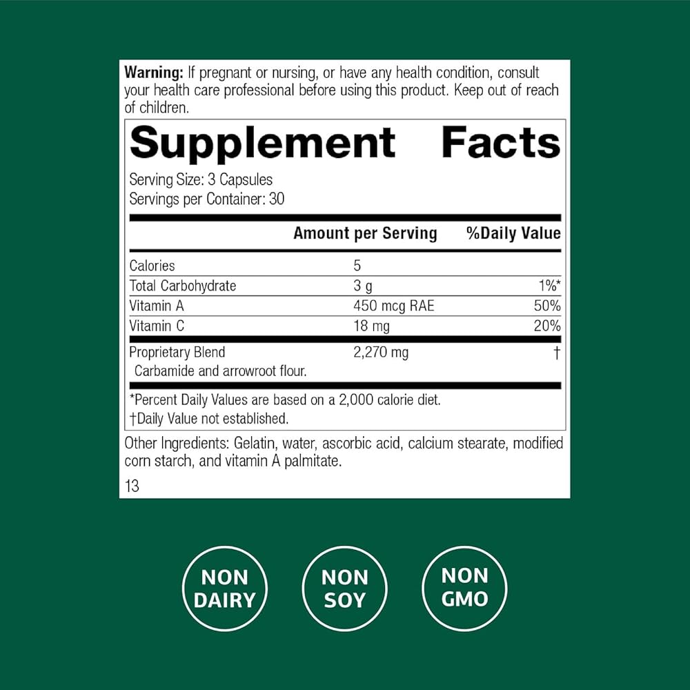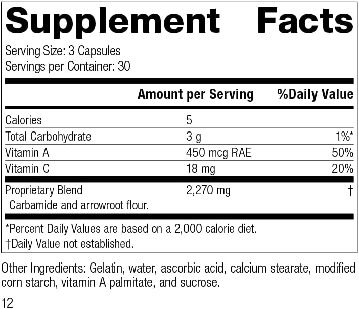 العملية القياسية A-C كارباميد - مكمل دعم الكلى الخالي من الغلوتين مع فيتامين A وفيتامين C ودقيق الأروروت - 90 كبسولة