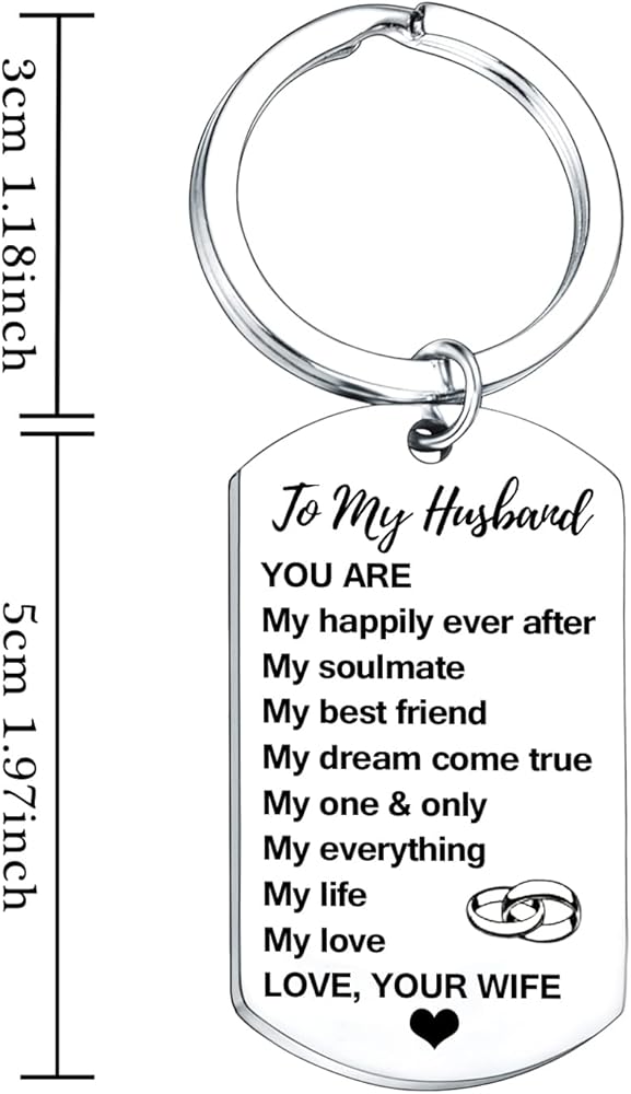 Are you looking husband gifts from wife?This to my husband keychain really is a great choice,buying it to your husband to express your deeply love to him. To tell a loved we often forget to say, this keyring lets you give a loved a message that they can carry around with them.