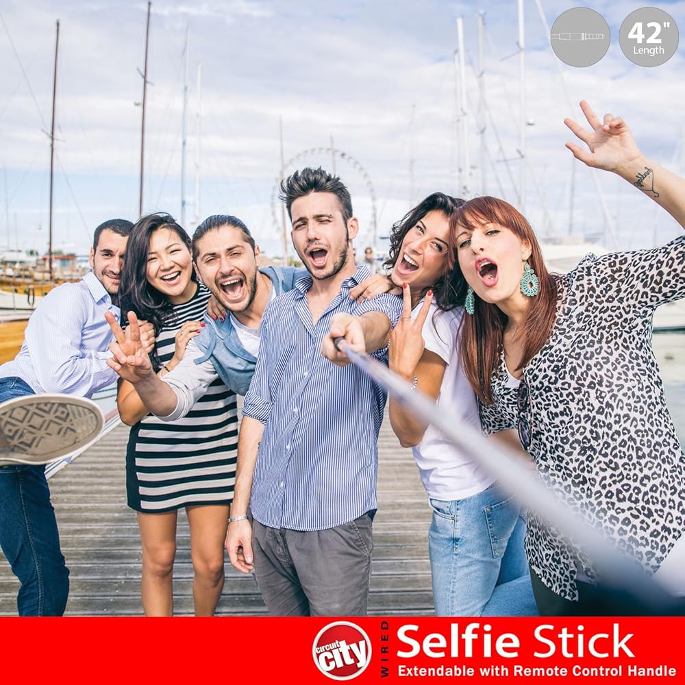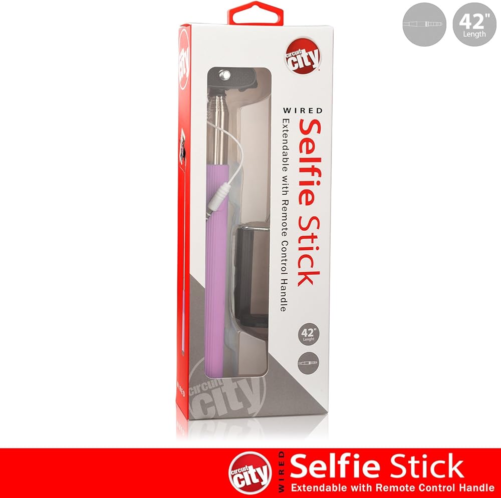 عصا سيلفي من Circuit City Wired Stretch able Selfie Stick مع مقبض للتحكم عن بعد | الطول الإضافي 42âââââ"" تمديد مونوبود مع حبل قصير | حامل هاتف تلسكوبي من الصلب لهاتف iPhone 6 و5 و4 وSamsung S6 العلامة التجارية: Circuit City
