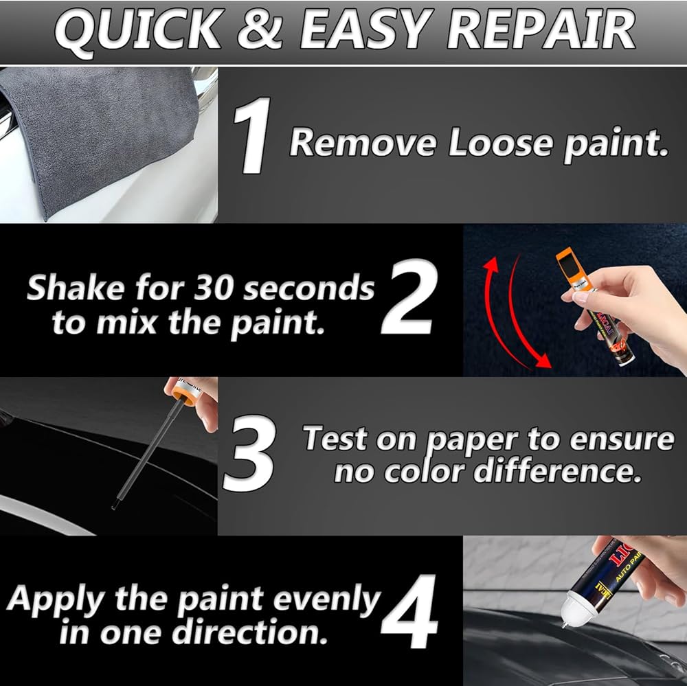🚲 𝐍𝐨𝐭𝐞 -- We guarantee that our black touch up paint will match 90% of black cars, and we offer a 100% After-sales Service (Note: It is best to try a piece of waste paper before use, compare the color of your car, and then use it). If you are dissatisfied with the car touch up pen or have any problems during use, please contact us, and we will solve any problem for you!