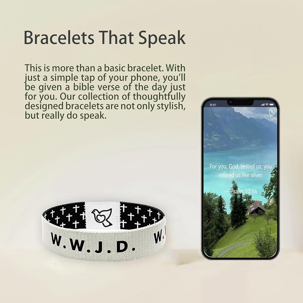 【سوار مسيحي للرجال والنساء】مشاركة إيمانك لم تكن أسهل من أي وقت مضى. ما عليك سوى ارتداء السوار المسيحي للرجال والنقر على شريحة NFC لمشاركة آيات الكتاب المقدس المعروضة على جهازك على الفور مع الآخرين. انشر رسالة الحب والأمل والإخلاص مع من حولك، مما يثير المحادثات الروحية ويعزز الروابط
