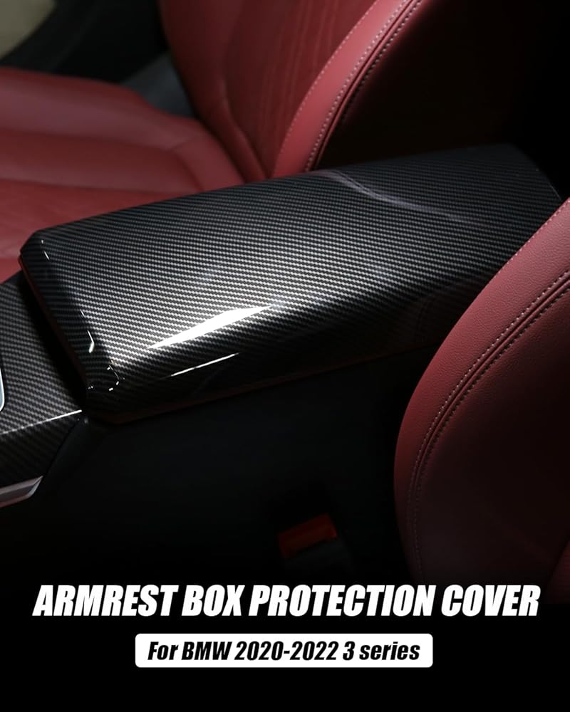 غطاء صندوق تخزين مسند ذراع وحدة التحكم المركزية من ألياف الكربون G20، متوافق مع BMW G20/G21/G22/G23 3 Series 328i، 330i، 335i، 340i و4 Series 425، 430، 440 (2020-2025)