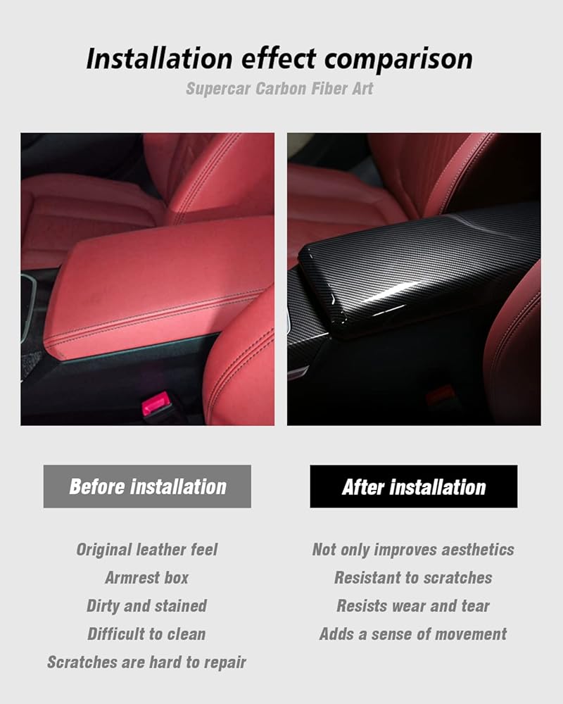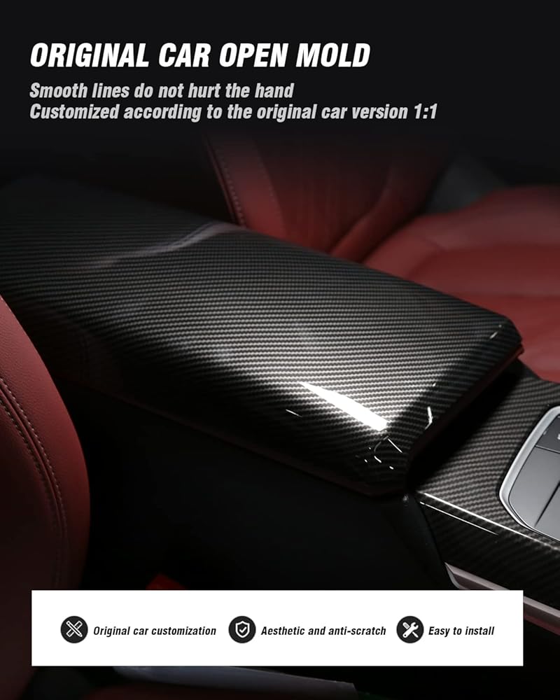 المواد: مصنوعة من مادة ABS عالية الجودة مع ملمس ناعم. مصمم للتثبيت على غطاء صندوق وحدة التحكم المركزية الأصلي للحصول على ترقية أنيقة ومتينة.