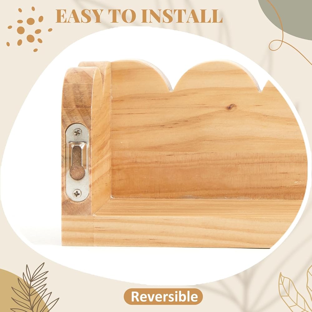 Easy to Install: the scalloped floating shelves are wall-mounted and easy to install; Just use the included screws for convenient placement; The package even includes expansion screws that protect your walls from damage; The installation process is easy and straightforward, making it a user-friendly product