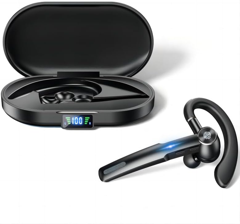 • 【تصميم مريح】سماعة أذن بلوتوث كاملة مع تصميم مريح للعمل والمكتب والقيادة والشاحنات؛ خطاف الأذن مصنوع من مادة مطاطية ناعمة ومرنة، تتوافق مع شكل أذنك وتوفر راحة ممتازة. يسمح لك خطاف الأذن القابل للسحب والذراع القابل للطي وسدادات الأذن القابلة للدوران بالتبديل بين الأذنين اليسرى واليمنى حسب الرغبة.