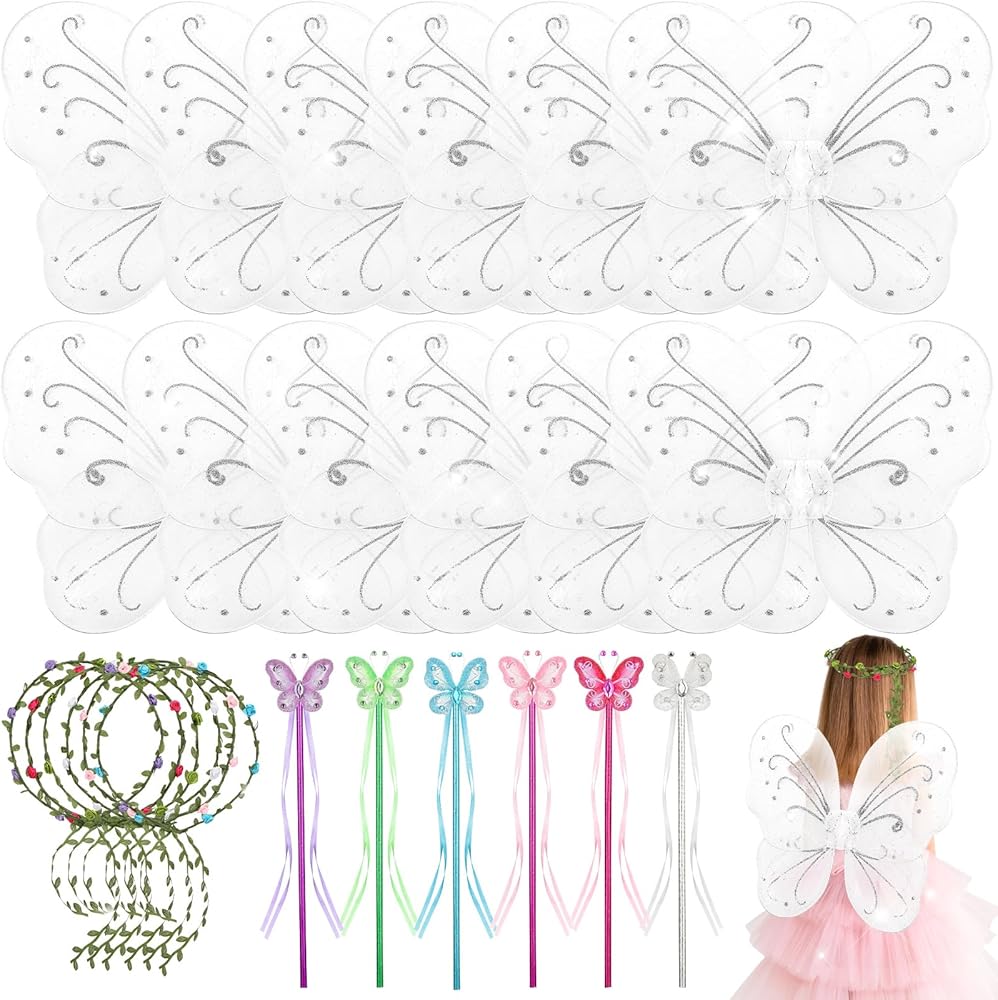 قوية وموثوقة: الأجنحة الخيالية مصنوعة من النايلون ولها هيكل سلكي سفلي يمكن أن ينحني ويحتفظ بالشكل المطلوب؛ مصنوعة من البلاستيك والقماش، عصا الفراشة خفيفة الوزن وسهلة الإمساك؛ عصابة الرأس المصنوعة من قماش الحرير مع سلك مدمج بألوان زاهية وأحجام قابلة للتعديل، مما يجعلها إكسسوارًا جيدًا للارتداء