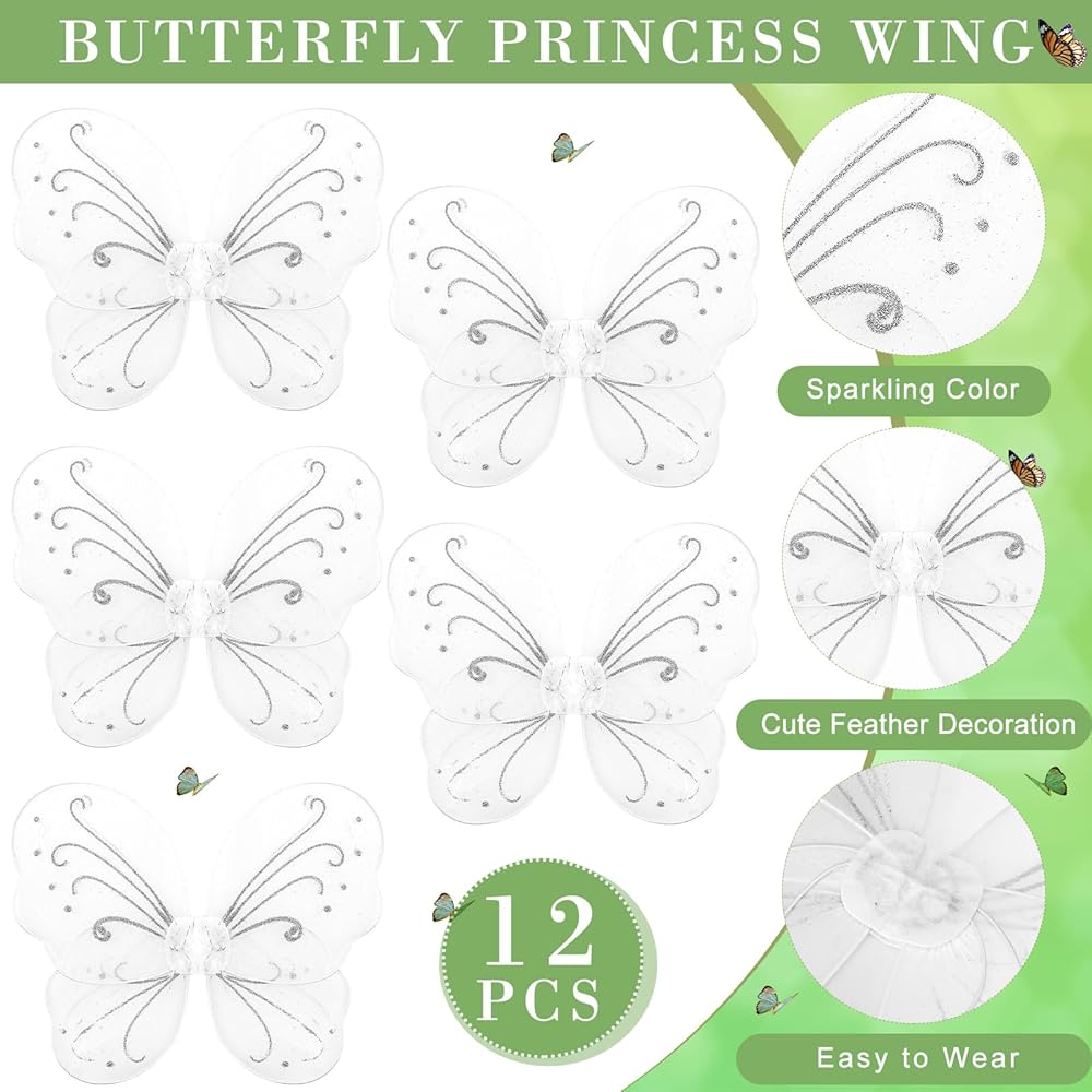 تصميم لطيف: لوازم الحفلات الخيالية هذه لافتة للنظر ورقيقة بتصميمات الفراشات؛ تحتوي أجنحة الفراشة على أسلاك بداخلها، حتى تتمكن من الانحناء أو الاحتفاظ بأي شكل تريده، وهي خفيفة الوزن ومناسبة للارتداء