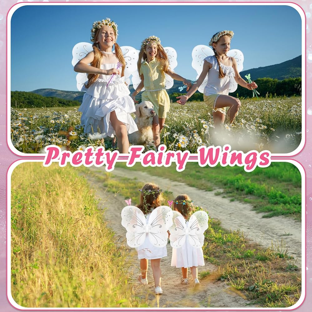 المقاس المناسب: يبلغ مقاس أجنحة الفراشة للفتيات حوالي 15.4 × 11.8 بوصة/ 39 × 30 سم، ويبلغ طول عصي الفراشة حوالي 11.8 بوصة/ 30 سم، بينما يبلغ قطر تاج الزهرة حوالي 7.5 بوصة/ 19 سم وهو قابل للتعديل. تناسب معظم الفتيات