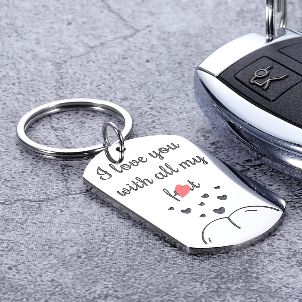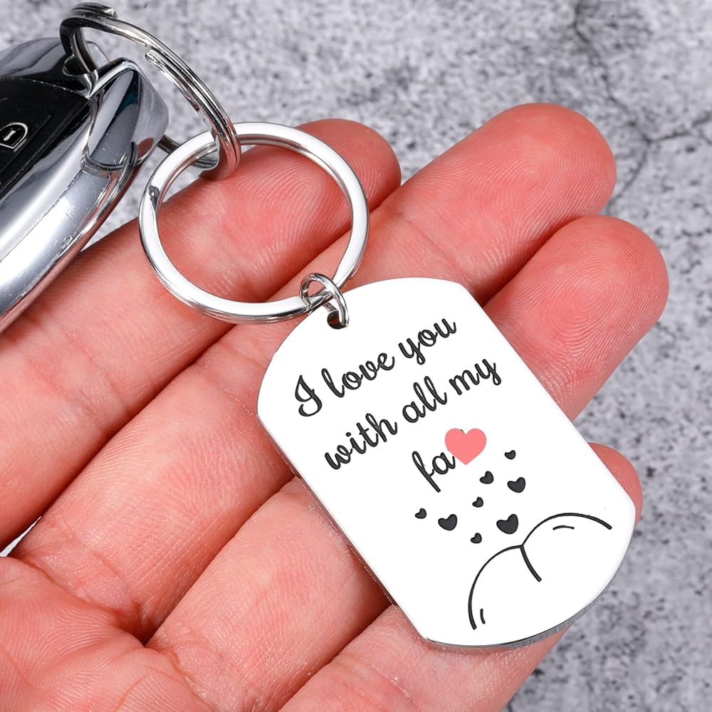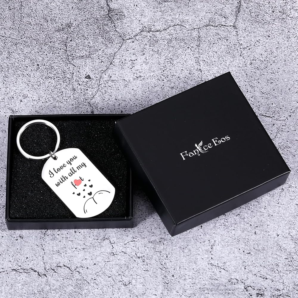 Valentine Gifts for Husband Boyfriend: This keychain is a creative gift you can give to the love of your life. Engraved with funny words: "I love you with all my f**t" What a great way to remind them how special he is to you. Great gift for boyfriend husband hubby bf, Valentine's Day gift for him, men's gift for valentines day, birthday gifts for him, I love you anniversary gift, husband keychain cute boyfriend gifts from girlfriend wife.