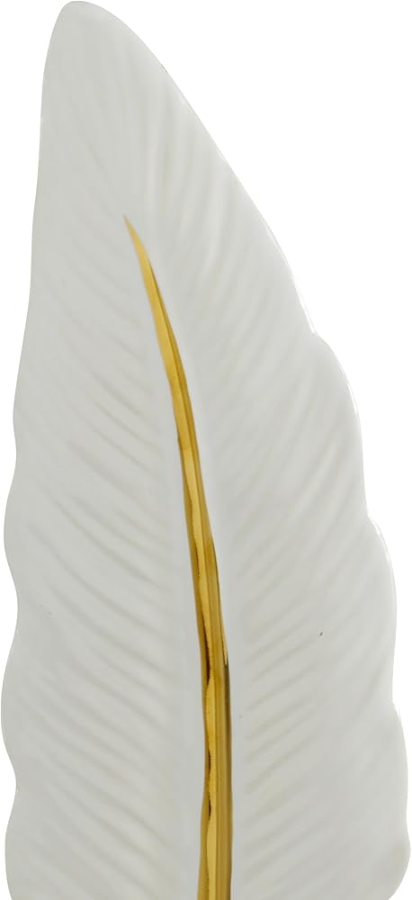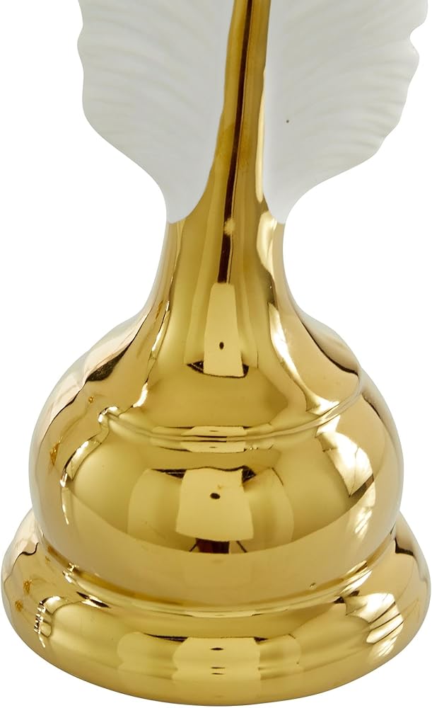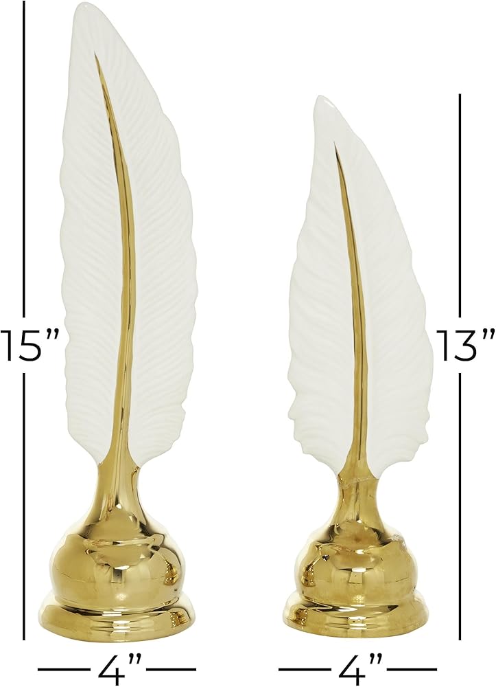 GOLD AND WHITE HOME DECOR FIGURINES: The decorative statues set showcases a polished gold finish with white on the feather figure, exuding elegance