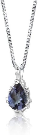 PEORA مقلد الكسندريت خمر دمعة قلادة قلادة للنساء 925 الفضة الاسترليني، تغيير اللون 2.25 قيراط شكل الكمثرى 10x7mm، مع سلسلة 18 بوصة، تغيير لون مجوهرات الكسندريت،