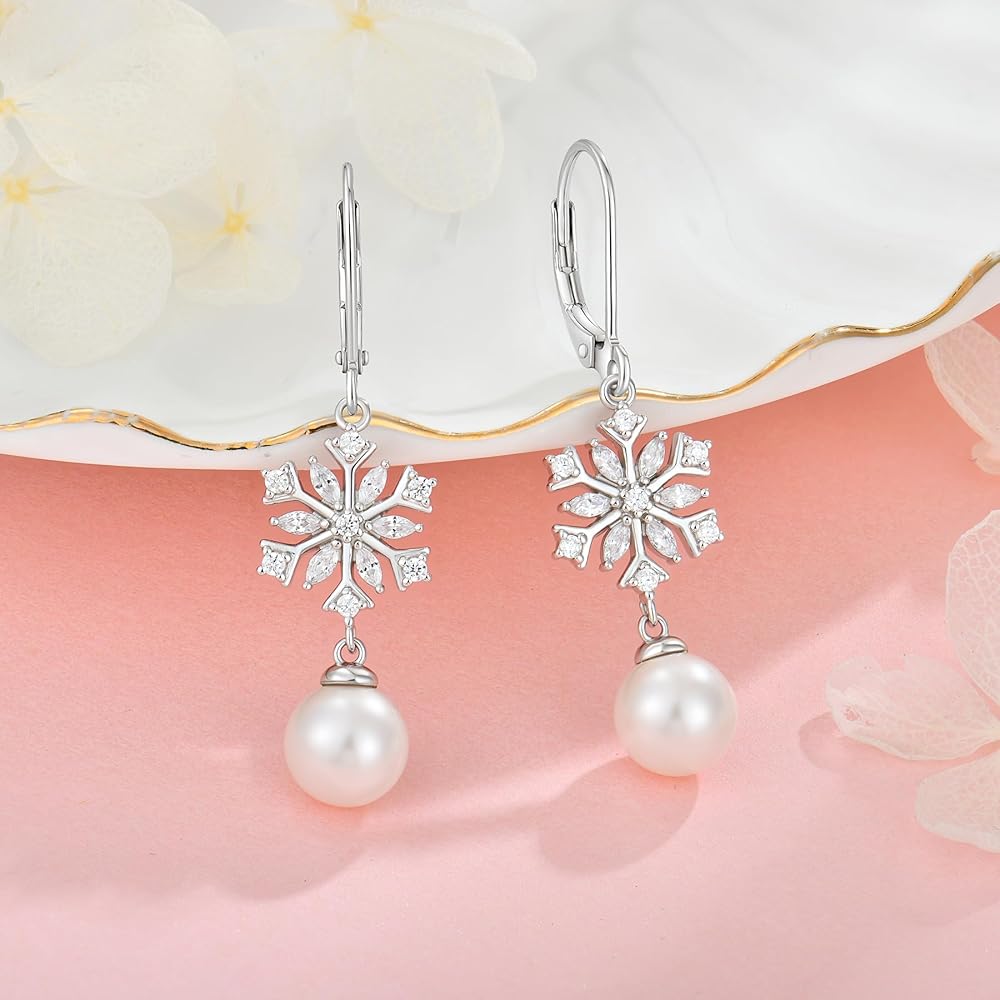 • ❄️【حجم مناسب 】قطر اللؤلؤة: 8 مم. إجمالي قطر ندفة الثلج: 13 مم. إجمالي ارتفاع القرط 40.8 ملم.