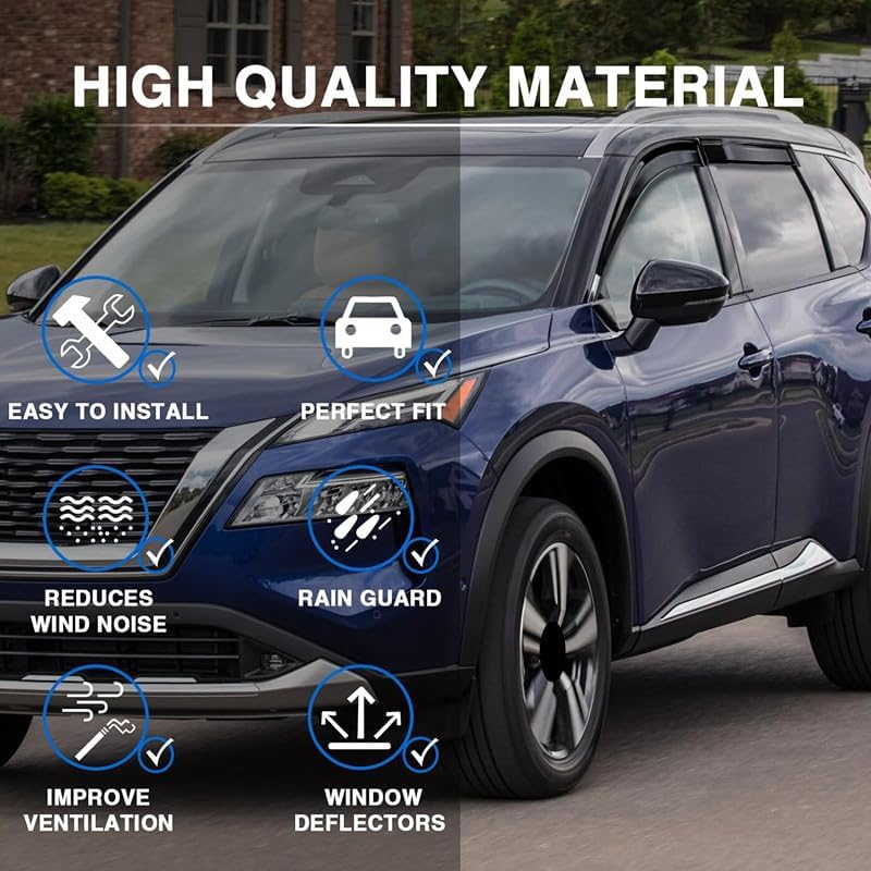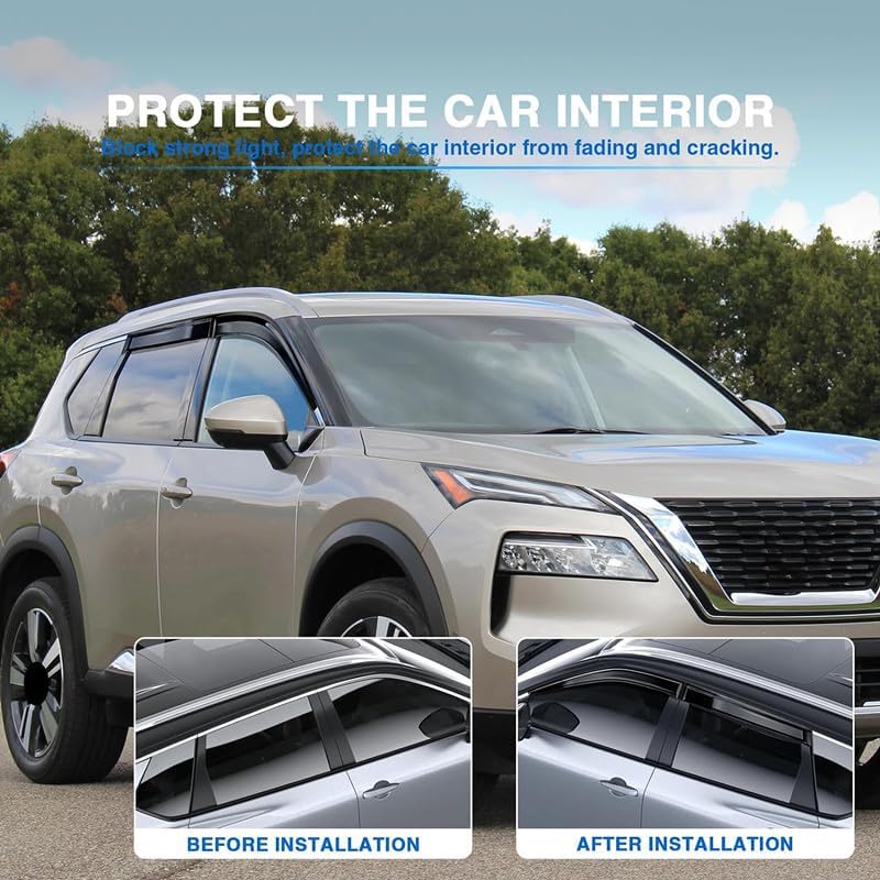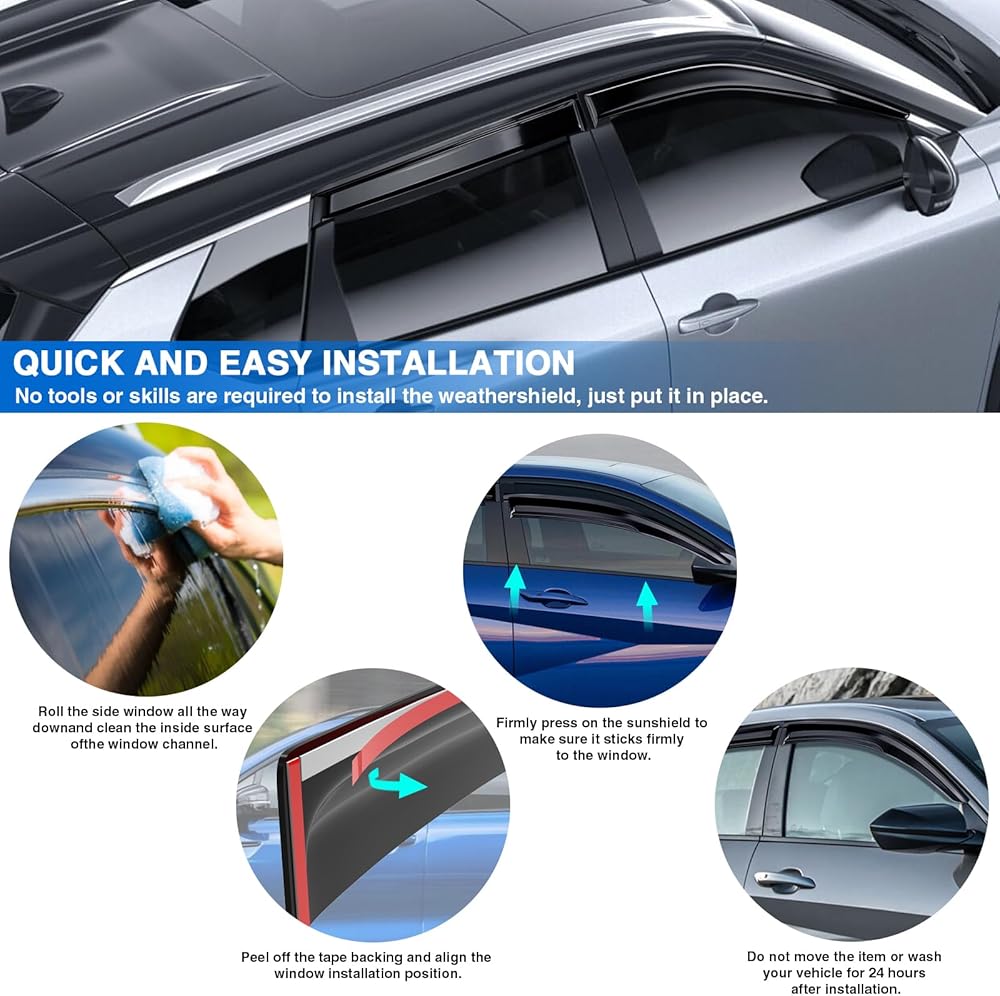【ميزات المنتج】يمنع المطر والثلج من السقوط داخل السيارة بشكل فعال، لذلك يمكنك فتح النافذة لتنفس الهواء النقي في الأيام الممطرة لضمان دوران الهواء داخل السيارة. يقلل بشكل فعال من احتمالية تعفير النافذة.