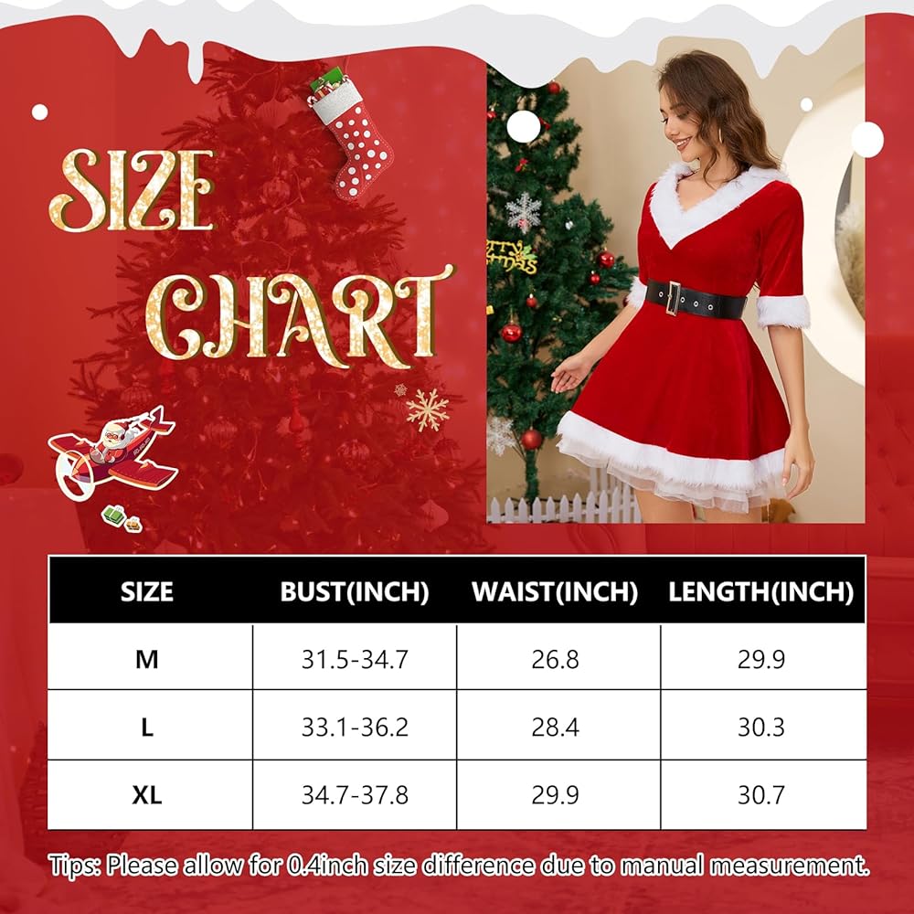 محتوى العبوة: 1 × فستان سانتا، 1 × حزام خصر أسود