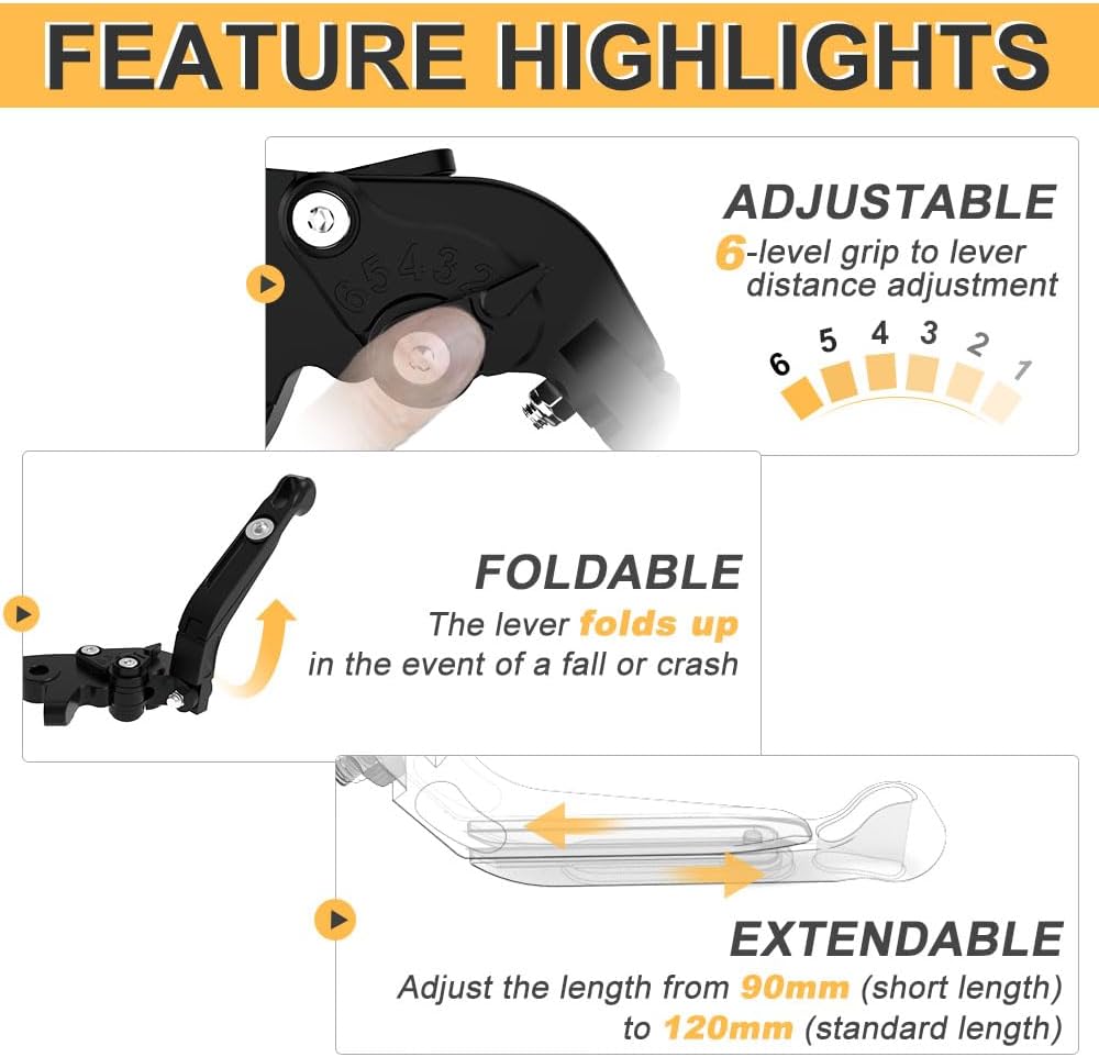 REARAC brake & clutch levers are featured with the new functions of Foldable and Extendable and Adjustable.
