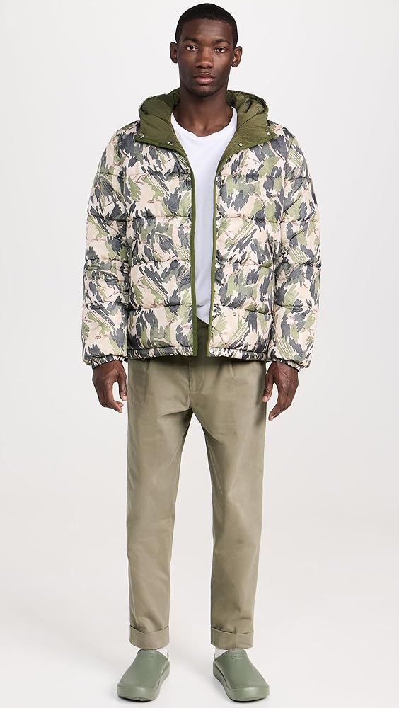 Reversible fibre down jacket featuring 'Leaf Camo' print