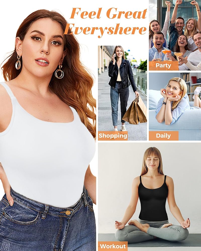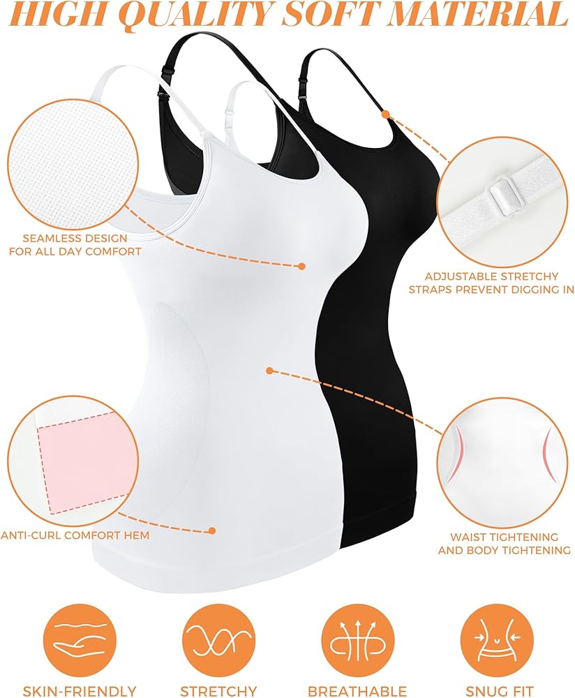 نحت محيط خصرك - يحتوي القميص الداخلي المخصص لتشكيل الجسم للنساء على ملابس داخلية مدمجة مع تنعيم 360 درجة لمقبض الحب والتحكم في البطن. متوفر بمقاسات وألوان متعددة لتكمل أي شكل جسم ولون بشرة. جميل بما فيه الكفاية لارتدائه بمفرده، هذا الكامي النسائي متعدد الاستخدامات هو قطعة طبقات ممتازة تحت القمصان والسترات والفساتين الملائمة بينما يوفر أيضًا الشكل والنعومة. ارتديها تحت ملابس مختلفة للعمل، والمواعدة، والحفلات، والترفيه، وحتى اليوغا.